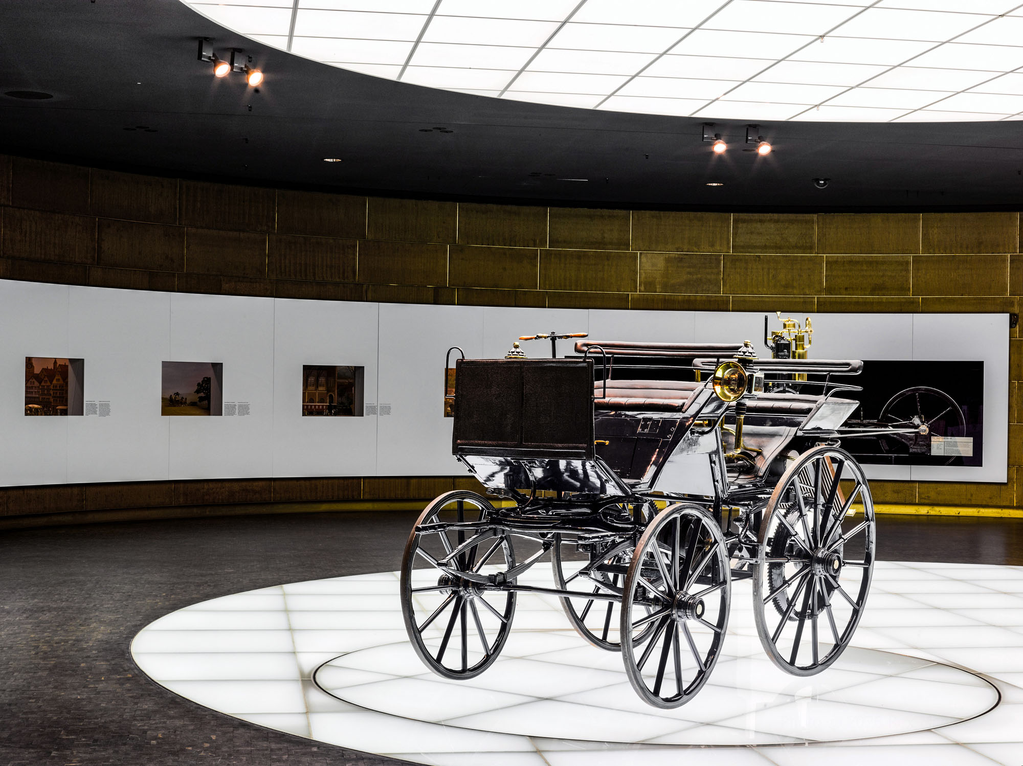 Mercedes-Benz Museum, Stuttgart: Daimler motor carriage in room Legend 1: Pioneers – The Invention of the Automobile, 1886 to 1900. (Photo reference number in the Mercedes-Benz Classic Archives: D104815)