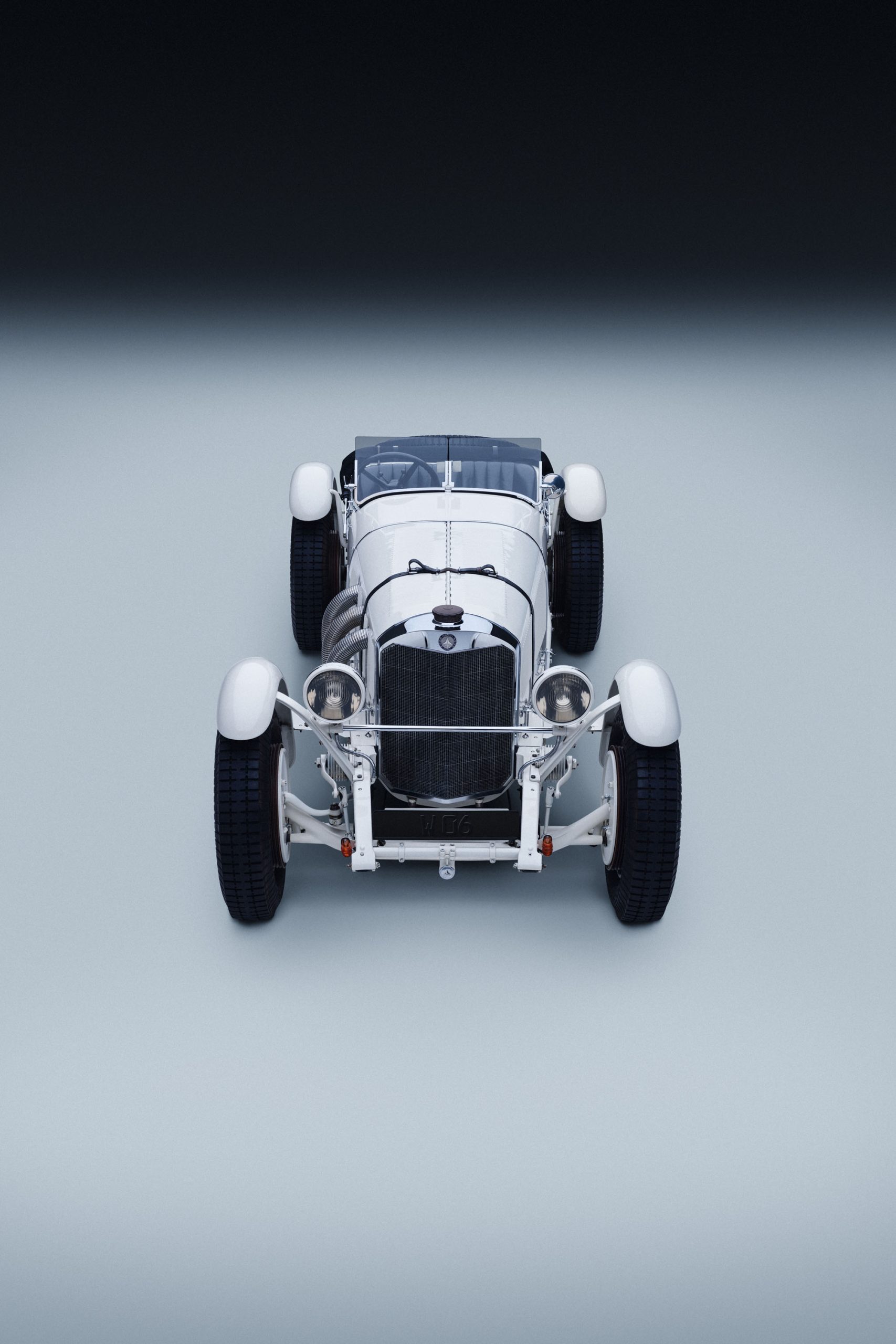Mercedes-Benz SSK (W 06), production period 1928 to 1932. Vehicle from 1928. Studio shot from the front, taken in 2025.