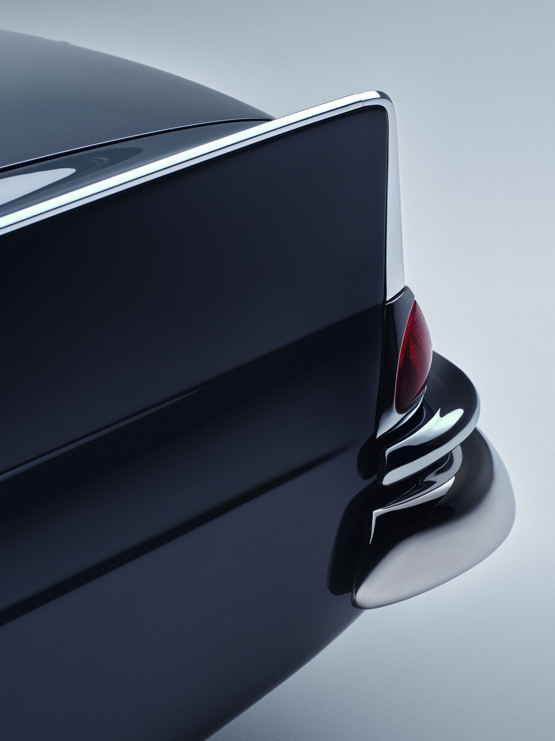 Mercedes-Benz 220 SE „Heckflosse“-Limousine der Baureihe 111, Produktionszeit 1959 bis 1965. Fahrzeug aus dem Jahr 1963. Detailaufnahme des linken Peilstegs („Heckflosse“) aus dem Jahr 2025.