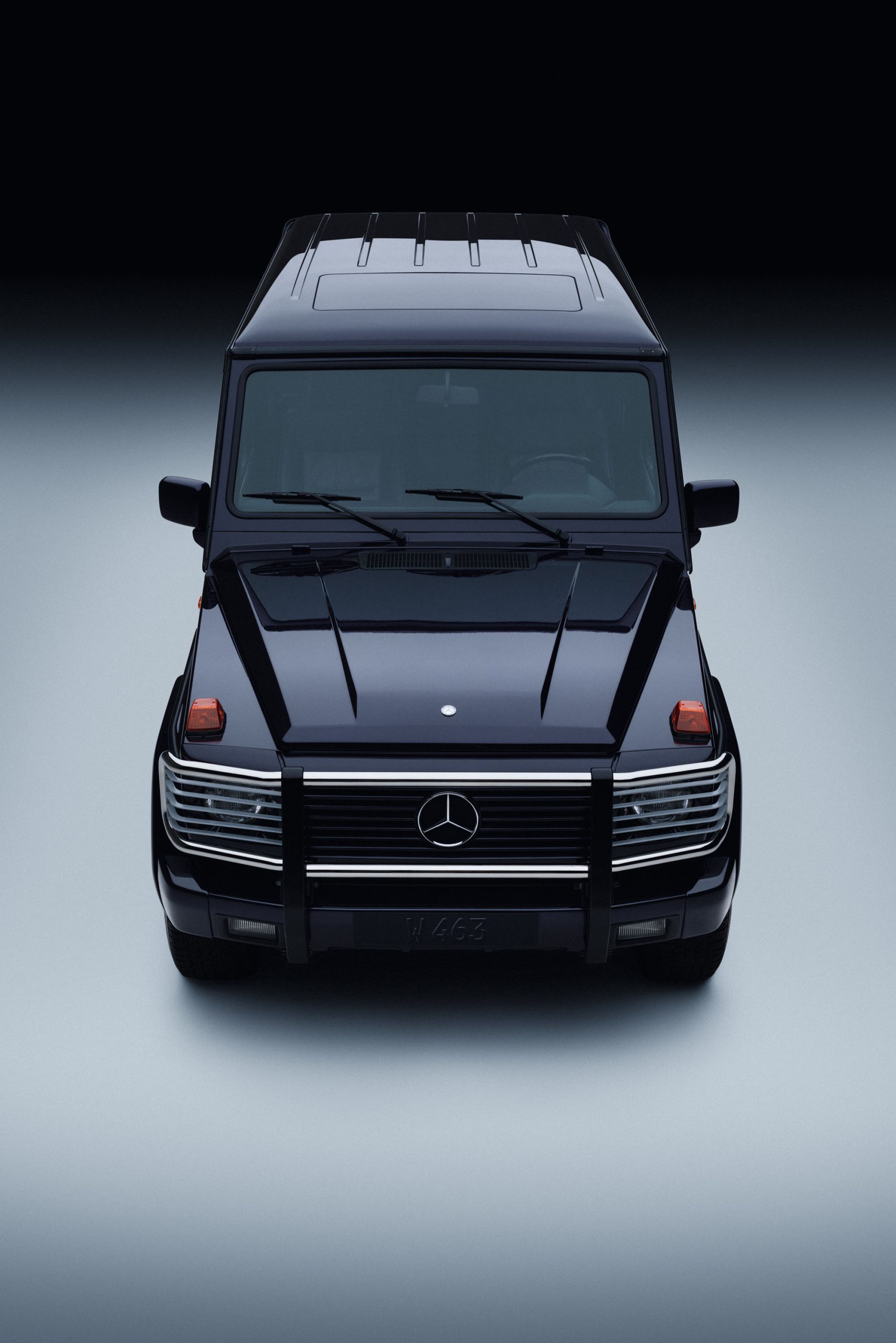 Mercedes-Benz 500 GE V8 from 1993 (463 series). The G-Class is being produced since 1979. Studio shot from the front, taken in 2025.