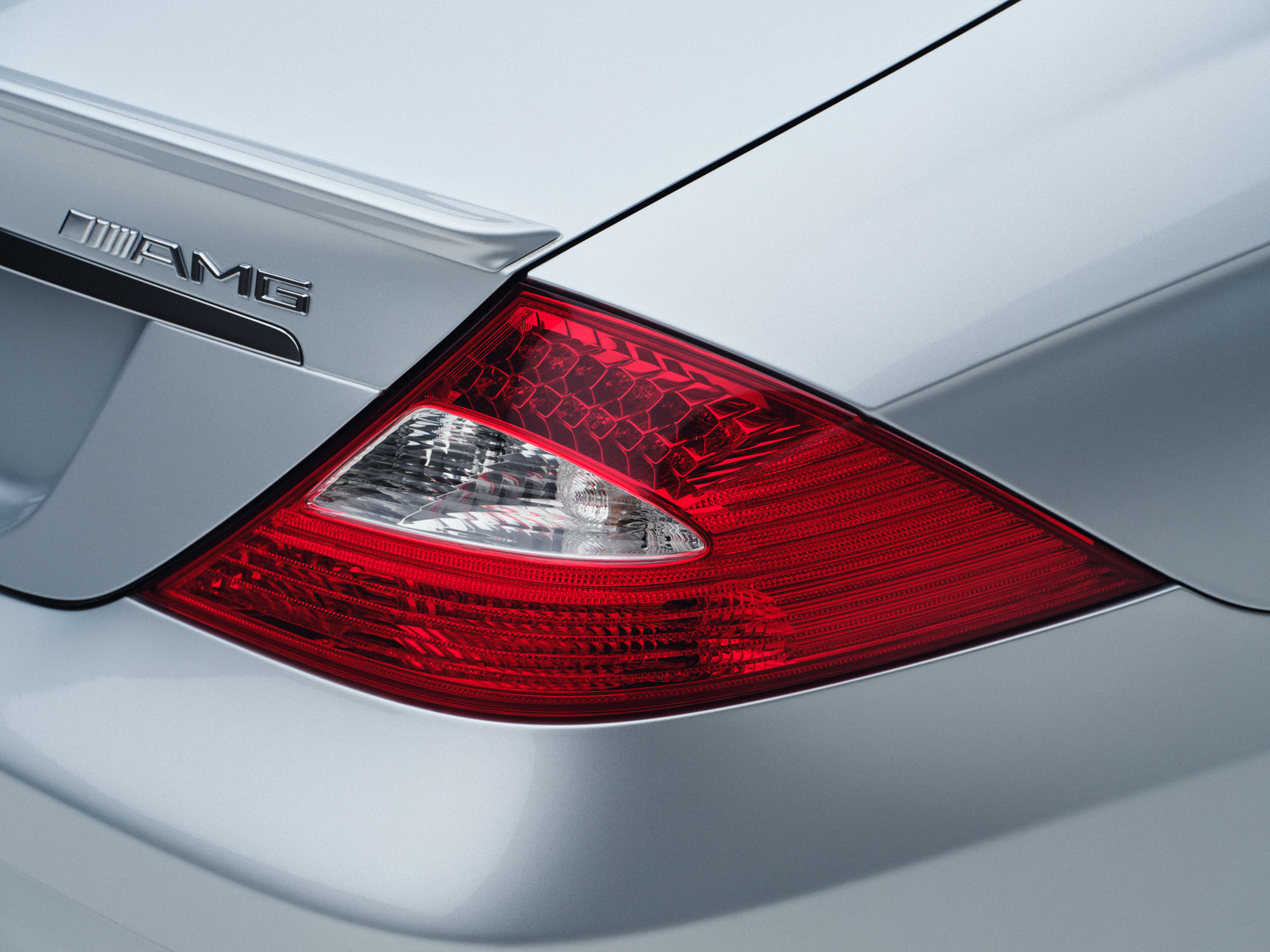 Mercedes-Benz CLS 55 AMG from 2005 (219 series, production period 2004 to 2010. Vehicle from 2005. Detailed shot of the right rear light, taken in 2025.