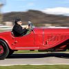 Turbine-style magnesium alloy wheels are secured by color-coded directional three-eared knock-offs and are wrapped in Hoosier TD S tires that measure 25.5 × 8.5-15 up front and 27.5×11.0-15 at the rear. White Goodyear lettering is overlayed on each tire. A spare housed under the tail panel wears Hoosier Vintage TD rubber. Stopping is handled by ventilated disc brakes with dual Wilwood master cylinders and front ducts that draw warmed air from behind the radiator.