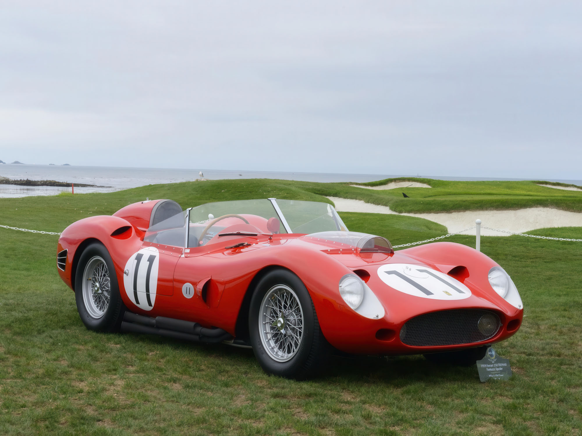 Ferrari will be the primary featured marque on this occasion, with a special focus on overall Le Mans winners and NART competition cars, and Vignale will be the featured coachbuilder. A Ferrari first appeared at Pebble Beach in 1951: Gentleman Jim Kimberly, heir to the Kimberly-Clark Kleenex fortune, showed his 1949 Ferrari 166 MM Touring Barchetta at the Concours and went on to compete in the Road Races. While in third place on lap 20 of the feature race, he skidded on oil and flipped the car— but he emerged unharmed and received a kiss for his efforts from his date, movie star Ginger Rogers. In the intervening years, over 900 Ferraris have appeared here. Ferrari became the first ongoing postwar featured marque at the Concours beginning in 1973, and we often host two or three Ferrari classes. On this occasion, we will be showcasing Ferrari’s overall Le Mans winners, NART competition cars, and Vignale-bodied road cars.