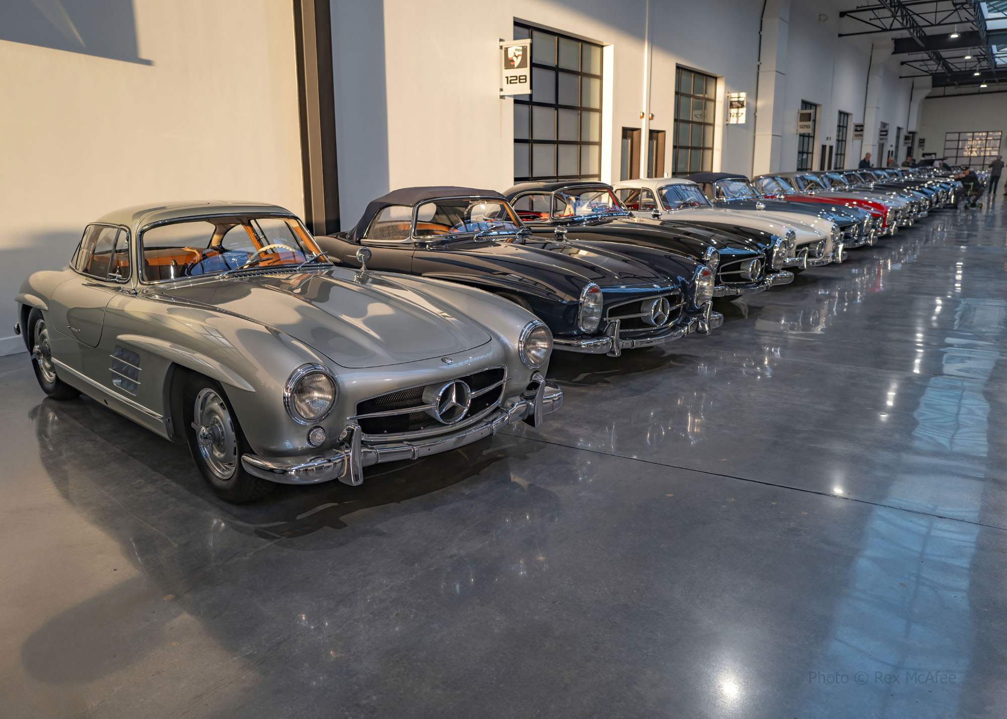While many of North America’s collector car owners are starting to add Sta-bil to their fuel tanks and putting their cars on blocks, Southern Californians have a different mindset, to say the least. Specifically, the luxury “car condo” establishment, Finish Line Auto Club in Costa Mesa, CA. Many of you will recall their jaw-dropping Art of the Automobile events, and now they set their minds to gathering a record-setting number of Mercedes-Benz 300 SLs.