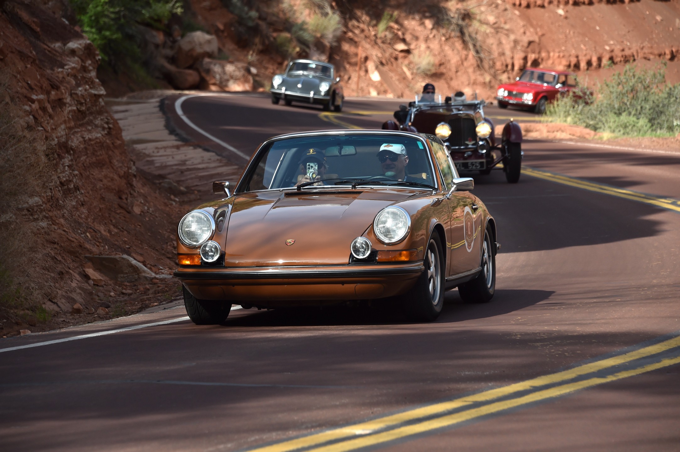The Copperstate doesn’t just draw a crowd—it draws icons. This year’s field included an exquisite mix of competition and touring machines: early Porsche 911s and 356s, Jaguar E-Types, Mercedes-Benz 300SLs, and even a Maserati 3500 GT. Whether meticulously restored or preserved with original patina, each entry is required to be road-ready and driven—not trailered—throughout the 1,000-mile journey.