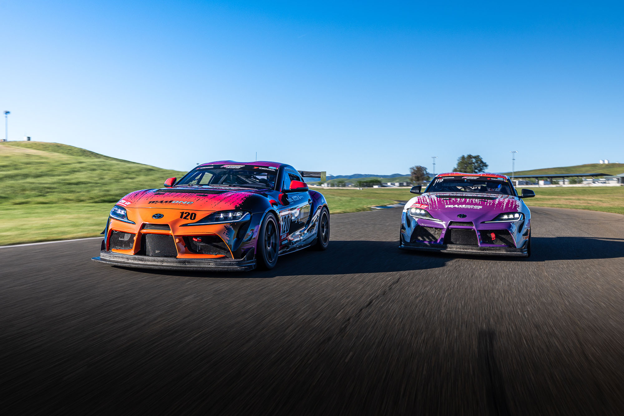 Both Toyota Supra GT4 entries arrived at the track in exceptional condition, a testament to the team’s shop and preparation standards, allowing engineers and drivers to immediately focus on dialing in performance. Thunderhill’s notoriously abrasive surface and evolving track conditions presented an early challenge, with tire degradation becoming a central focus throughout Thursday’s Max Track Time test sessions. Drivers took to the track early to familiarize themselves with the circuit, working closely with engineers to review data. Newly fabricated seat inserts from Brian Smith Fabrication also played a critical role, enabling smoother and more efficient driver changes—a vital component in endurance racing success.
