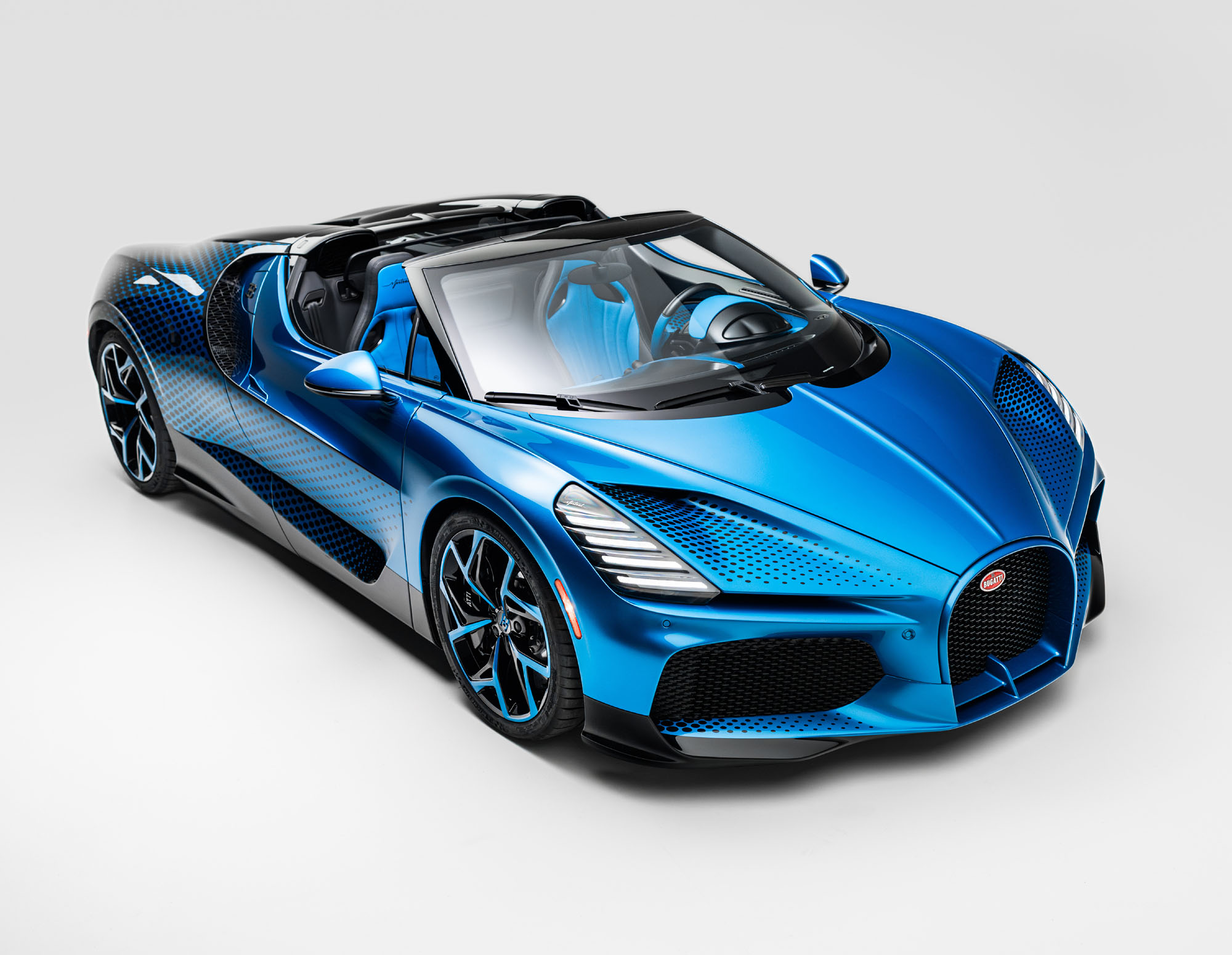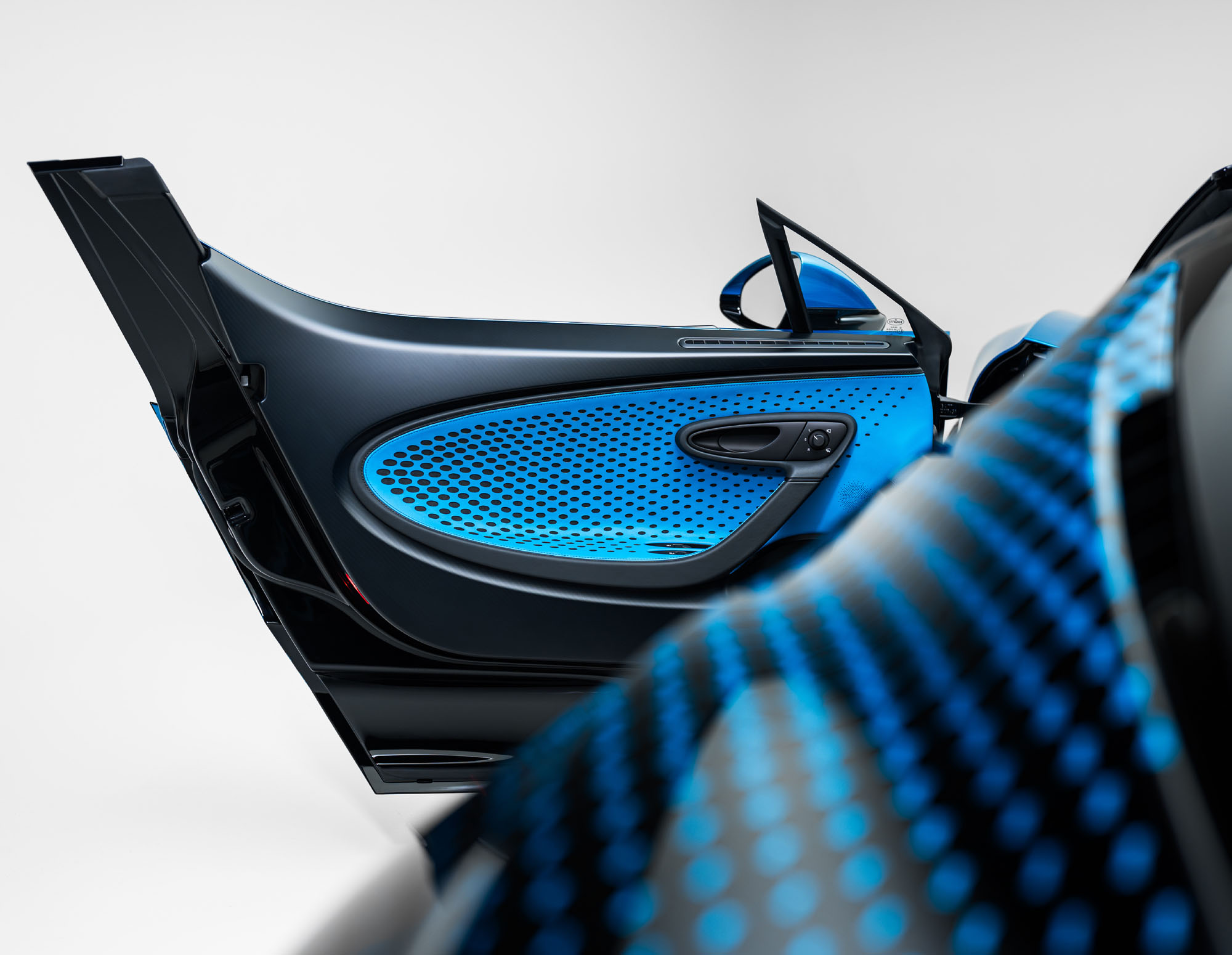 Inside, Bugatti continues the theme with a layered leather and Alcantara treatment, engineered to create a three-dimensional geometric pattern across the cabin. The ellipse design carries through the door panels and armrests—an industry-first application that required precise engineering to maintain visual continuity across curved surfaces.