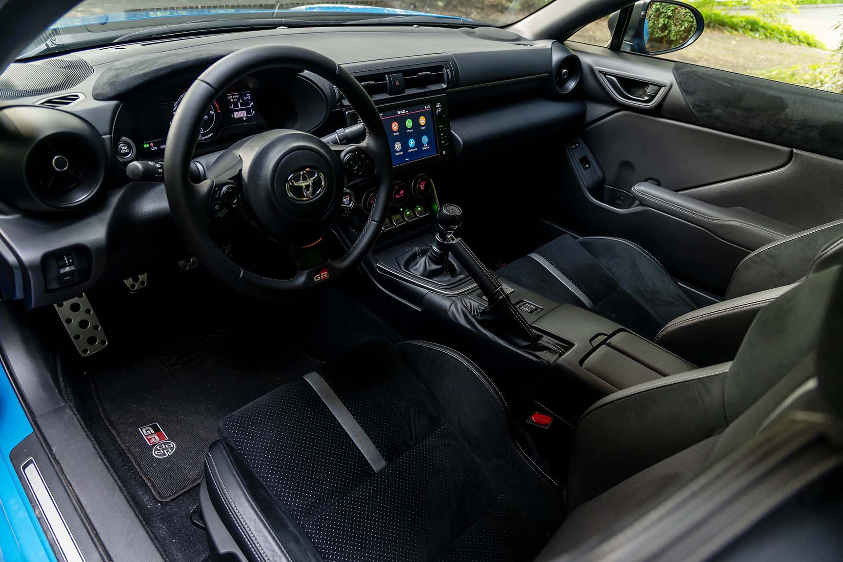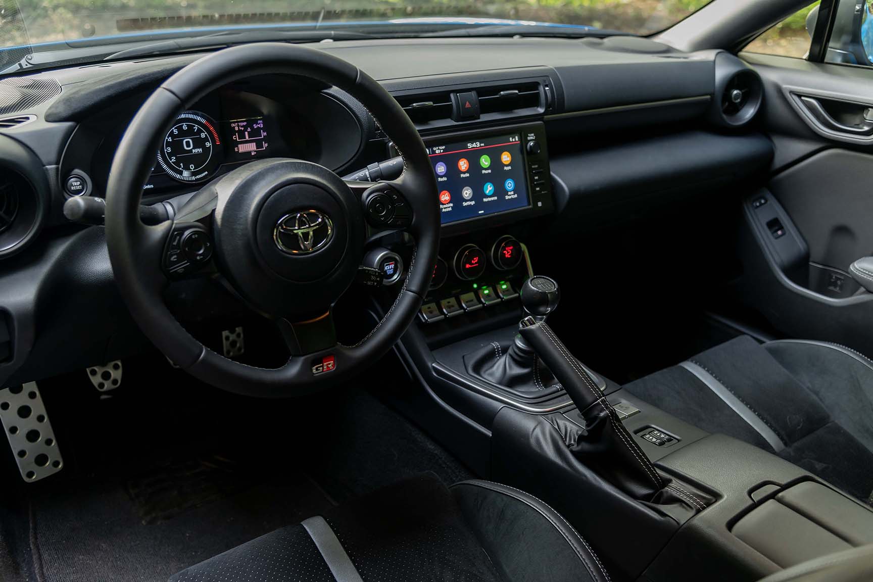 There are two trim levels: the GR-86 and the Premium. Drop the extra money and grab yourself the Premium. With the extra outlay, you get 18-inch alloy wheels shod in Michelin Pilot Sport 4 tires and adaptive LED headlights, both good sports car features. You also get eight speakers instead of six with your stereo. That helps you rock in your sports car. You also get heated seats, but if the temperature gets so low that you want to turn them on, you are going to have to purchase another set of wheels and tires, as the Pilot Sports are not rated for cold weather driving. Also, bypass the automatic transmission even though it adds on some safety features: Real sports cars have three pedals.