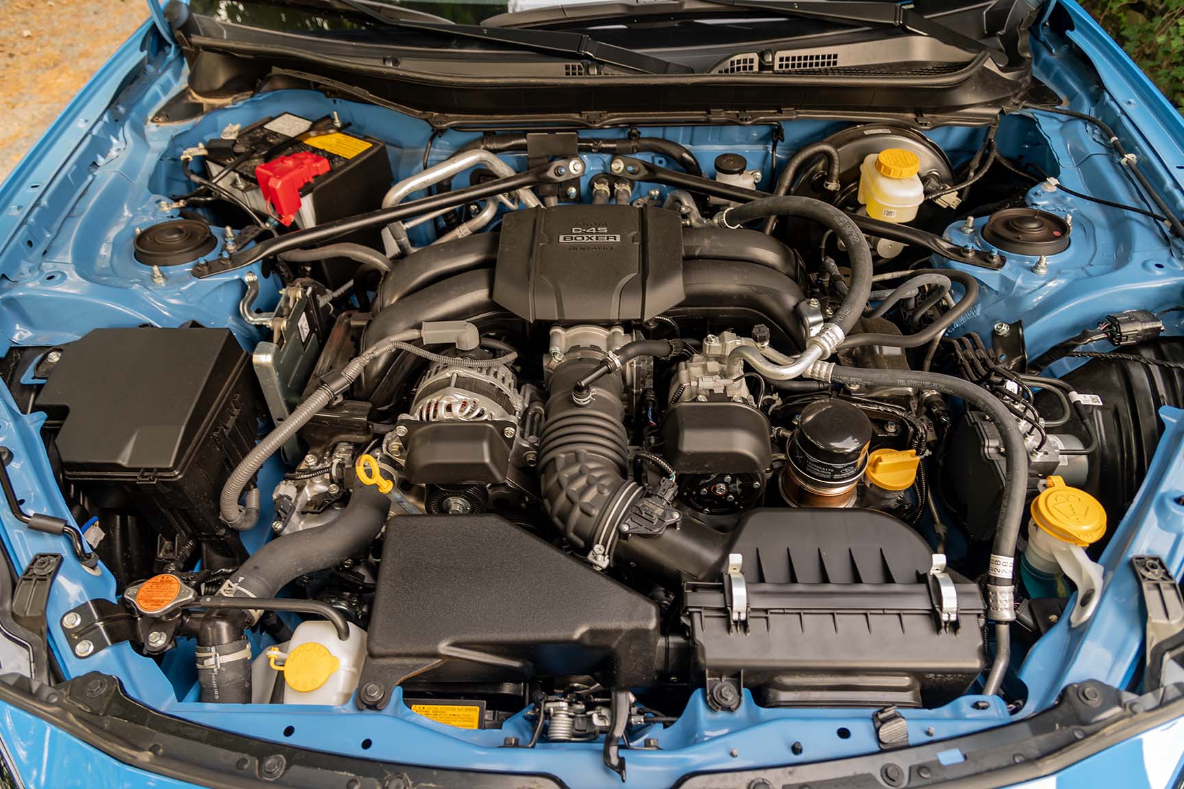 This Subaru-sourced engine utilizing Toyota’s direct fuel injection system is fun-loving and very responsive. It is ready to run itself up to the 7500 rpm redline. The normally aspirated boxer 4 accelerates with almost turbo-like alacrity.