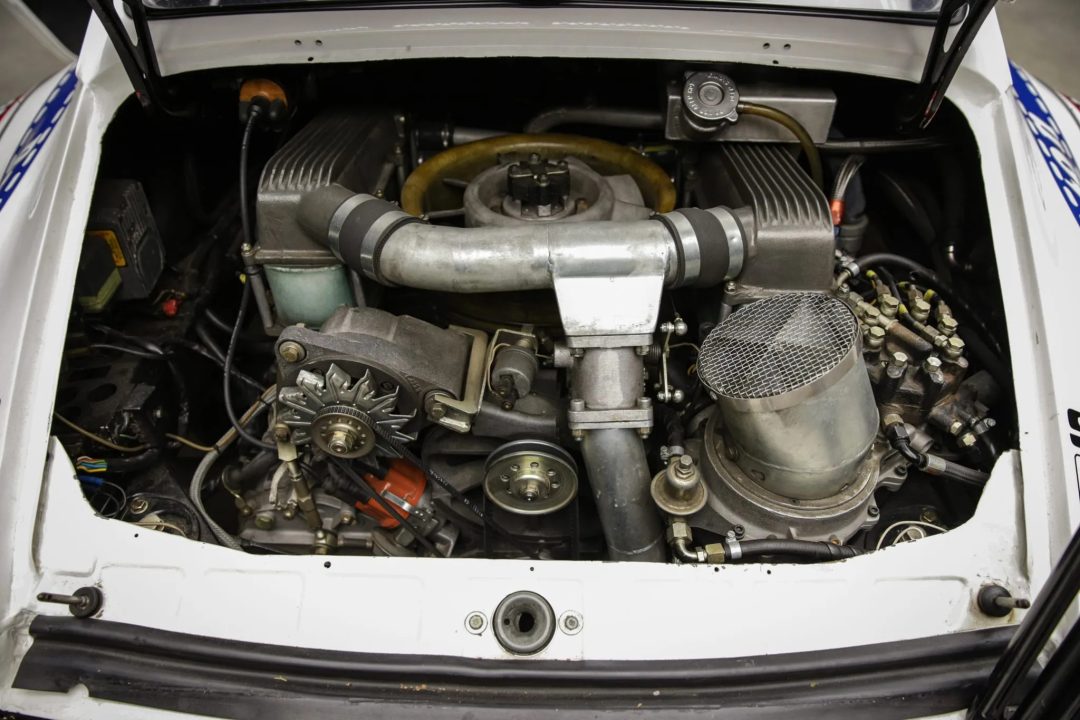The chassis was strengthened with additional bracing, while Bilstein coil-overs and wider 16-inch BBS center-lock wheels improved handling. Components from the Porsche 917 enhanced durability, and a larger fuel cell and oil tank occupied the front trunk. Slightly lighter than the road car, the 934 used a turbocharged 3.0-liter engine known for its laggy yet potent delivery. Porsche built 31 examples in total, including the original prototype.