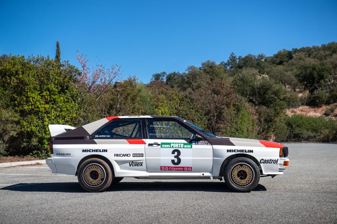 At the upcoming Bonhams Monaco Auction, a rare 1983 Audi Quattro A2 Group B rally car (#38) will be offered with an estimated value of $1.1–$1.4 million. Built by Audi Sport, it was driven during the 1983 season by Hannu Mikkola, who won the Rally of Portugal with this car.