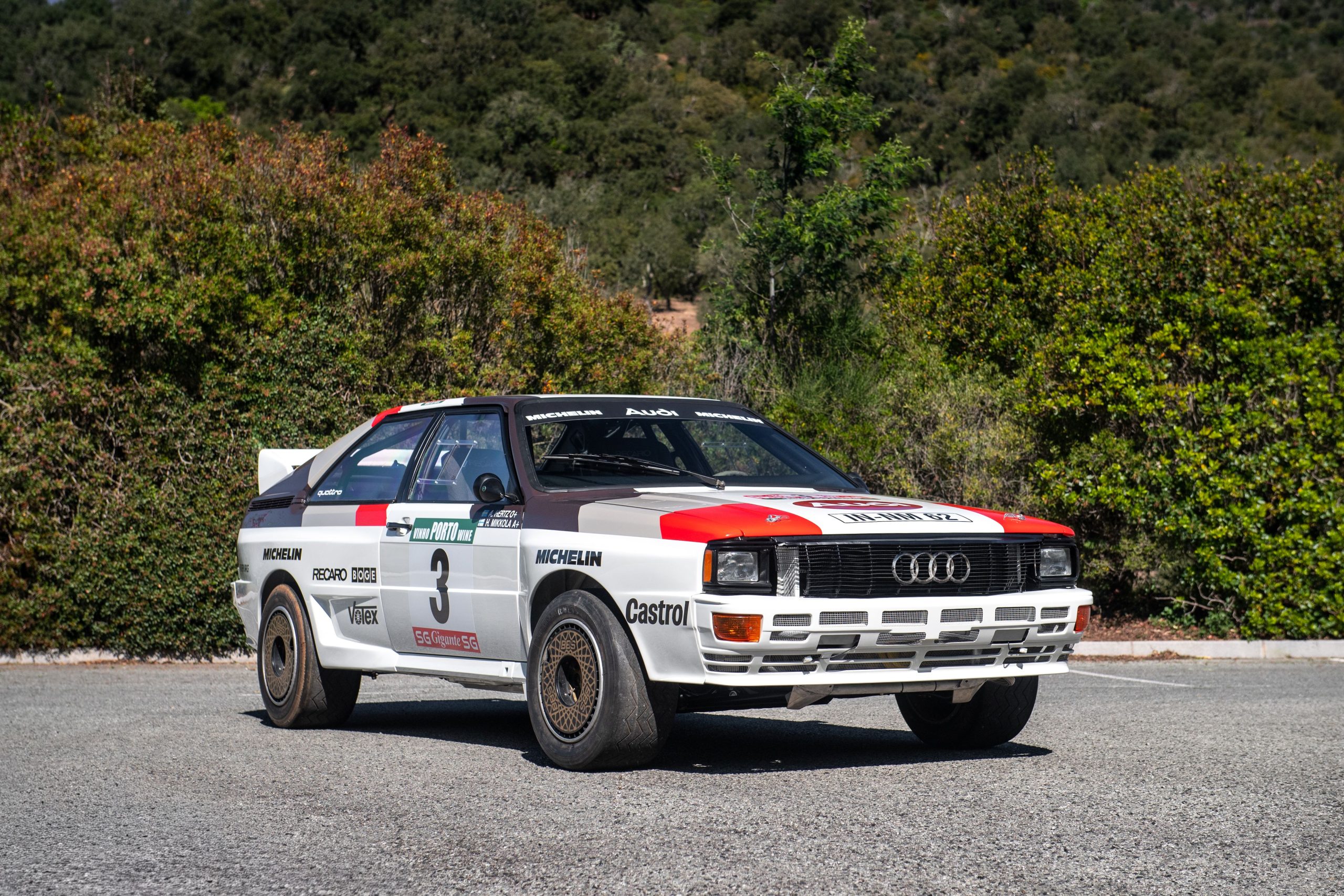 At the upcoming Bonhams Monaco Auction, a rare 1983 Audi Quattro A2 Group B rally car (#38) will be offered with an estimated value of $1.1–$1.4 million. Built by Audi Sport, it was driven during the 1983 season by Hannu Mikkola, who won the Rally of Portugal with this car.