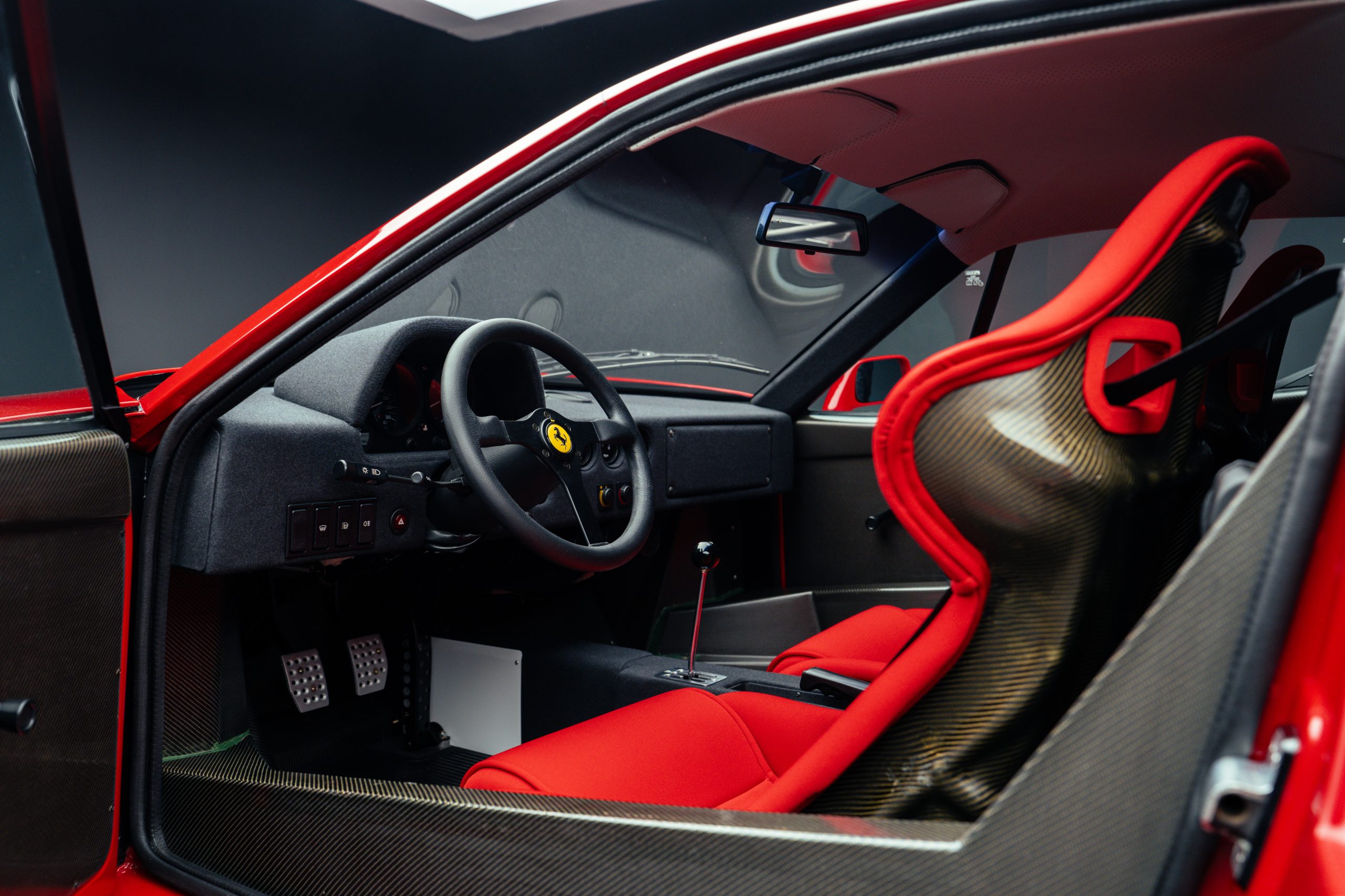 In 2021, the F40 was acquired by its second owner and entrusted to Michelotto Automobili for a comprehensive recommissioning. Completed between 2022 and 2024 at a cost exceeding €165,000, the work included a full overhaul of the fuel system, turbochargers, braking components, suspension, and drivetrain, while carefully preserving the car’s original finishes wherever possible.