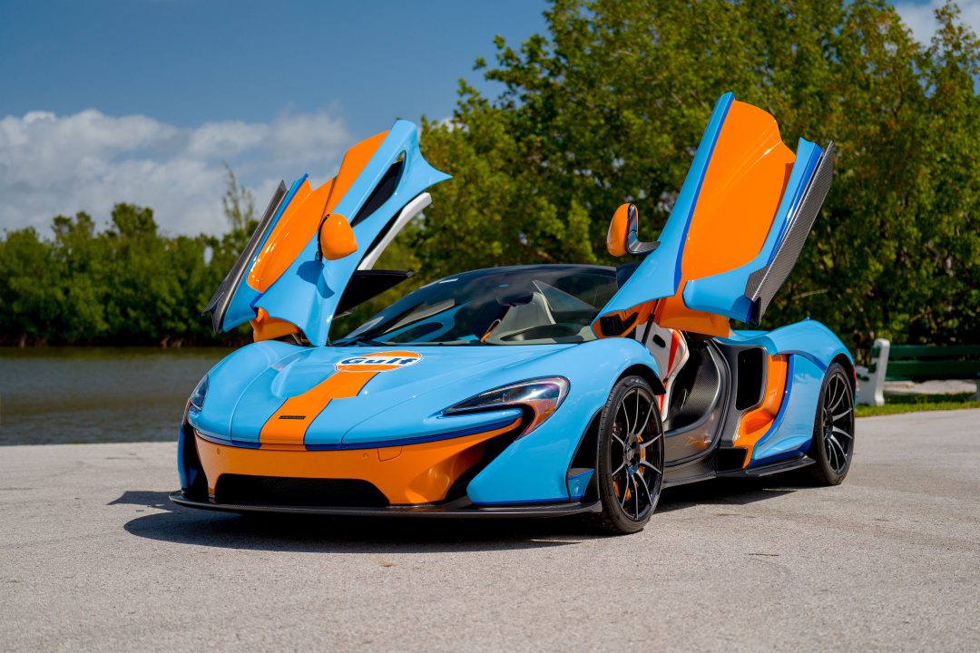 Bonhams Cars will feature a rare highlight at its Miami Auction on May 3: one of just five 2015 McLaren P1 Spider conversions by Lanzante, estimated at $4–5 million. Originally built by McLaren Automotive as a P1 Coupé nicknamed “The Professor,” this example is the second car transformed into an open-top Spider by Lanzante. It now wears iconic Gulf racing colors—light blue and orange—with a white leather interior accented to match.