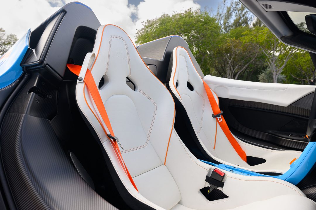 This particular car is number 209 of 375 P1s produced, around 150 of which were built for the U.S. market. Initially sold through McLaren of Philadelphia, it was customized extensively by its first owner with unique colors and options costing nearly $140,000. After changing hands twice, it was ultimately selected for Lanzante’s exclusive Spider conversion.