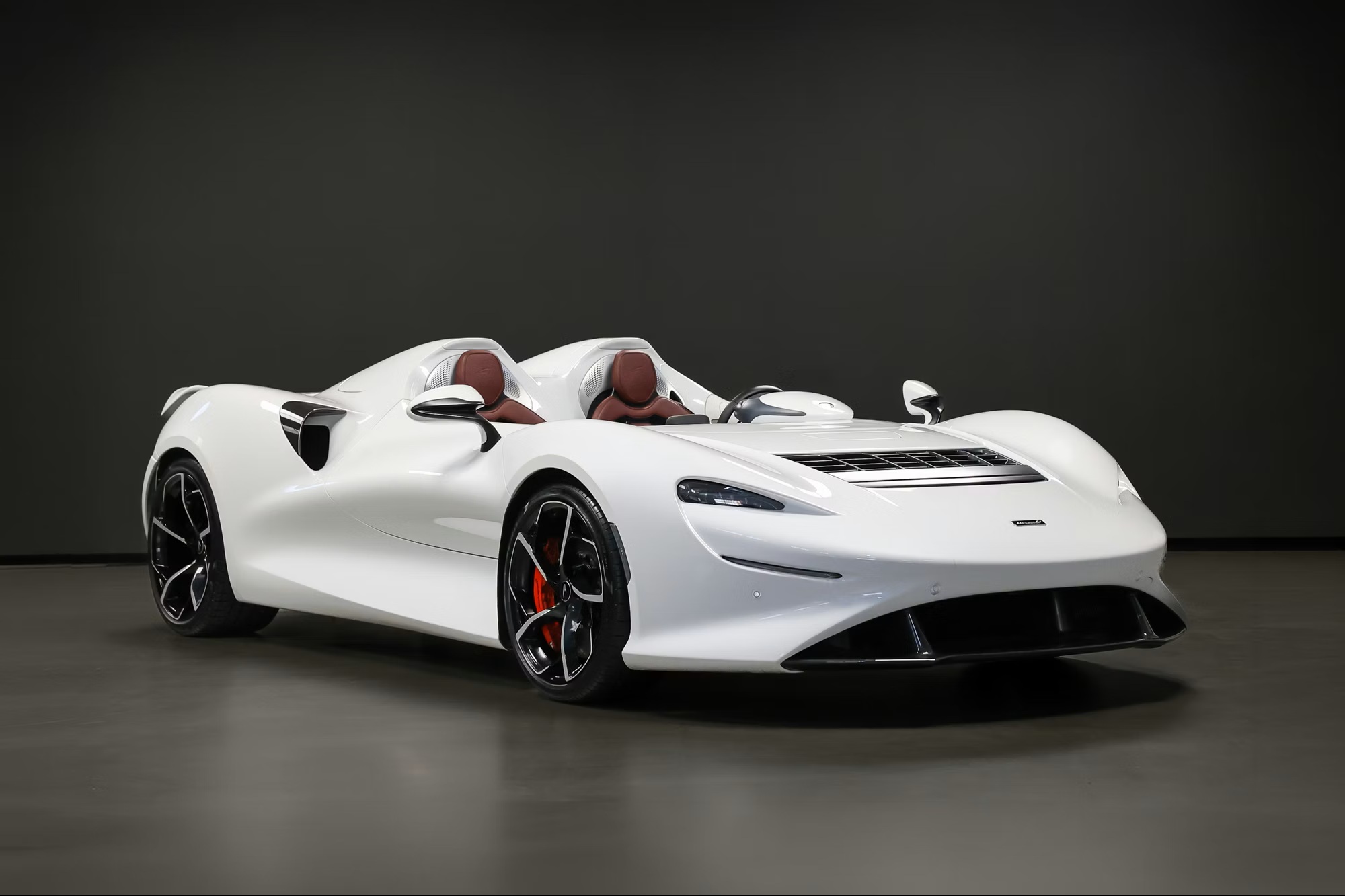 Inside, it’s trimmed in Bordeaux semi-aniline leather with embossed McLaren logos, satin carbon-fibre accents, galvanic grey paddles, black seatbelts, branded mats, body-colour inserts, and satin-silver and brushed aluminium trim. It rides on gloss-black, diamond-cut super-lightweight forged wheels, paired with red McLaren brake calipers and Pirelli P Zero tyres.
