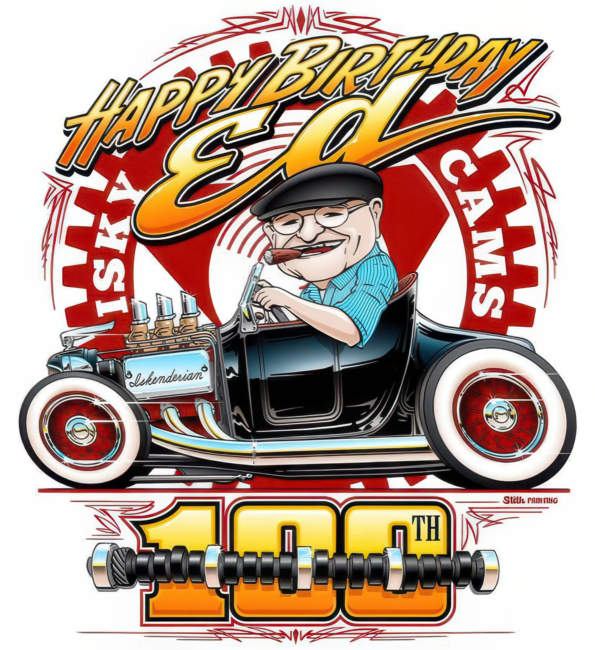 I had the good fortune on July 10th 2021 to attend Isky’s 100th birthday bash celebration at LTR Racing Engines in Onyx, CA. I sat with Isky, who was still sharp as a tack while he told me of his 100-year journey developing and founding “Iskenderian Racing Cams in West Compton area of Southern California, which is now run by his sons specializing in camshafts, lifters, pushrods, rocker arms, valve springs, apparel & media and much more.