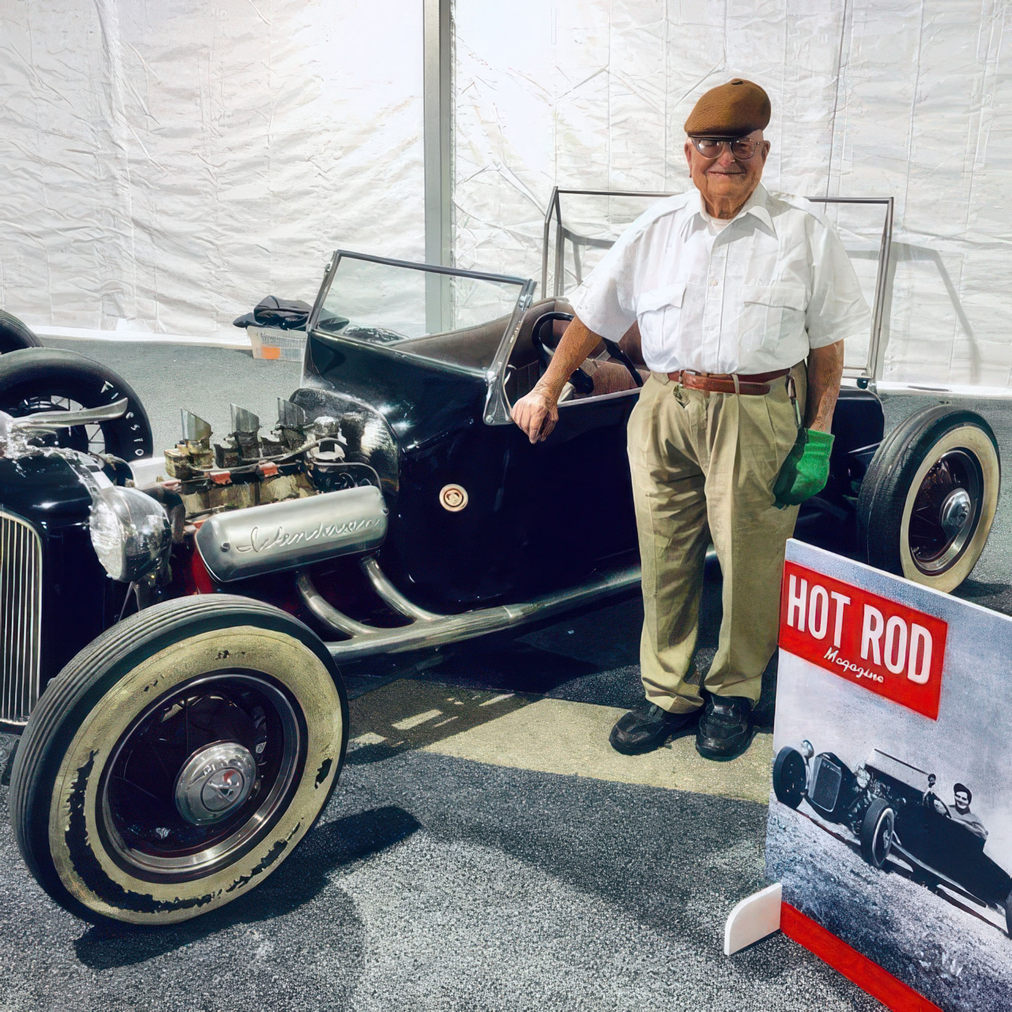 Over the years, he sponsored icon racers like Don “the Snake” Prudhomme, “Big Daddy” Don Garlits and the great Mickey Thompson. Along the way, he was the founder of SEMA and served as its first president. As my talk concluded with this sweet mechanical genus, he said, “I’ve been very fortunate to get into something that I like, and I was interested in, and I’m still interested to this day.” At his 104th birthday celebration in June at the Lions Automobilia Foundation and Museum in Rancho Dominguez, CA, Cindy Gibbs, daughter of Steve Gibbs from Nitro Revival, presented Isky with a beautiful black-and-white portrait of the man who helped shape the soul of hot rodding and drag racing.