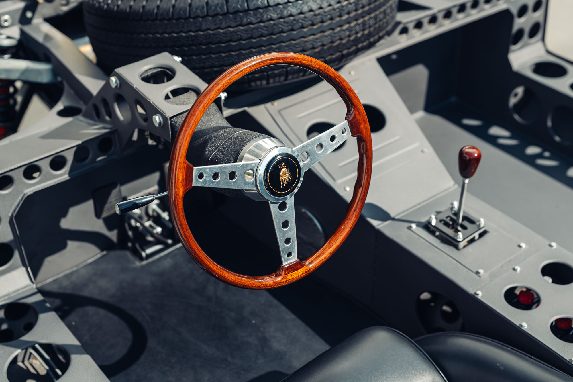 Later in the exhibition, the Miura SVJ will join the display. One of the rarest versions of Lamborghini’s first super sports car, the SVJ traces its origins to the Miura Jota, an experimental prototype developed in 1970 by Lamborghini test driver Bob Wallace to explore the car’s ultimate performance potential using race-inspired engineering principles. After the original Jota was destroyed, several customers requested road-going cars with similar characteristics. Lamborghini responded by converting a small number of Miura SV models into SVJ specification, incorporating technical and aerodynamic features derived from the racing prototype. The result remains one of the most extreme and coveted Miura variants ever built.