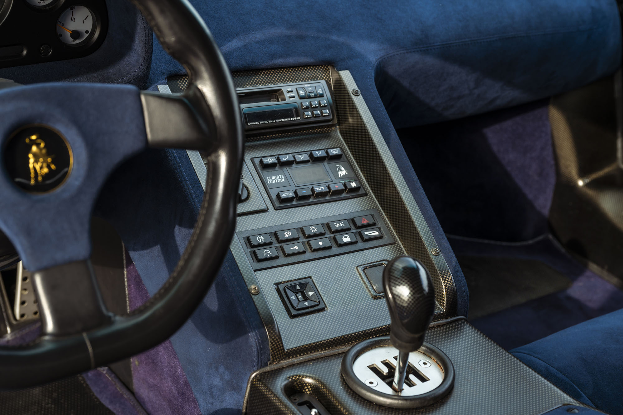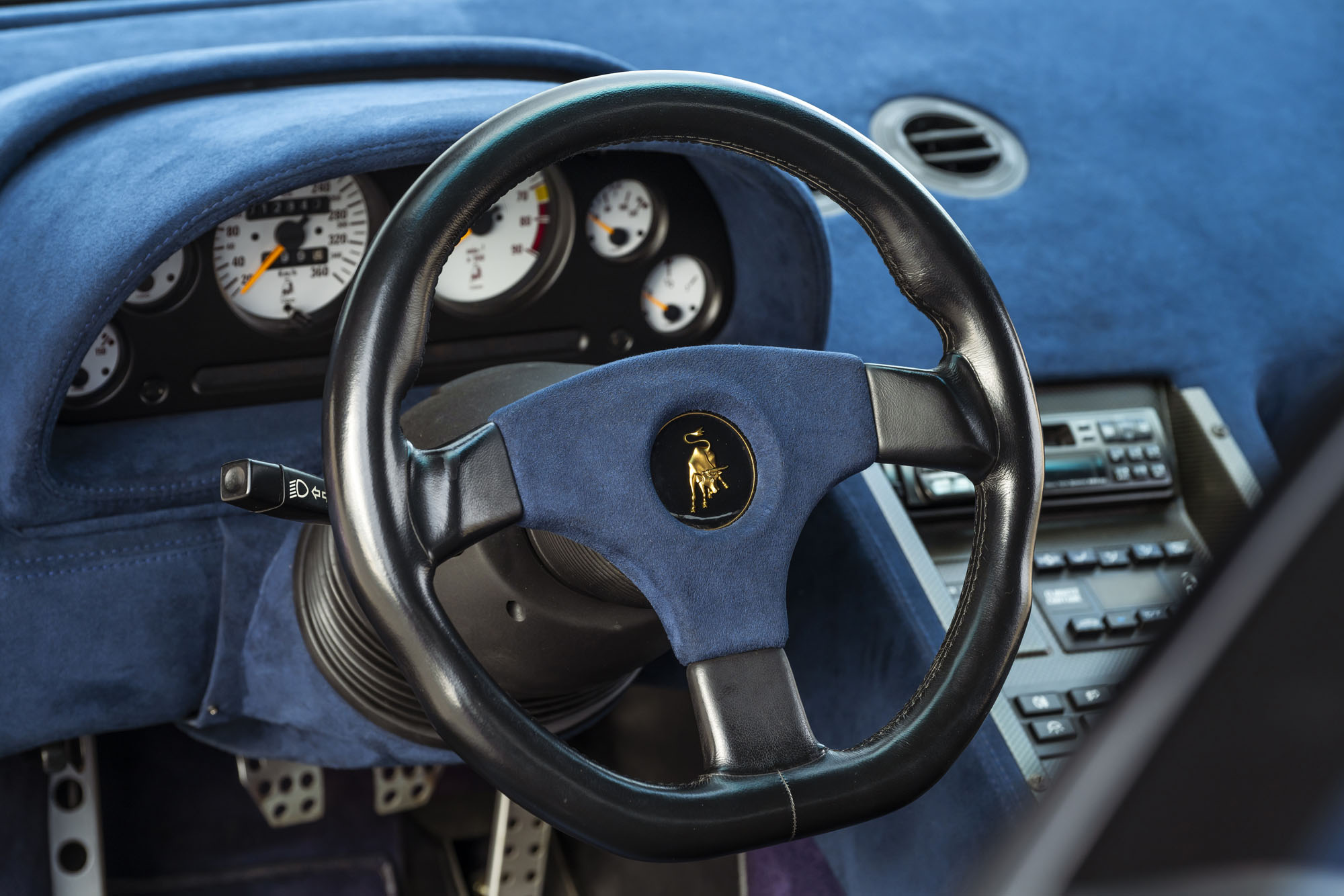 Still sporting its original color combination of Viola SE30 over a Blu Alcantara, the Diabo has seen a resurgence in recent years, beloved by enthusiasts for their sheer character and panache, with the SE30 being particularly sought after for its added performance over its predecessors. This SE30 has been largely kept in static storage and presents very well throughout, having been driven approximately 1,200 km over the past twelve years, with the odometer showing 12,840 km at the time of cataloguing, which is believed to be original. It would make an exciting addition to any collection of Lamborghinis, perfectly bridging the gap between the current cars produced under Audi AG’s ownership today and the Miura and Countach.