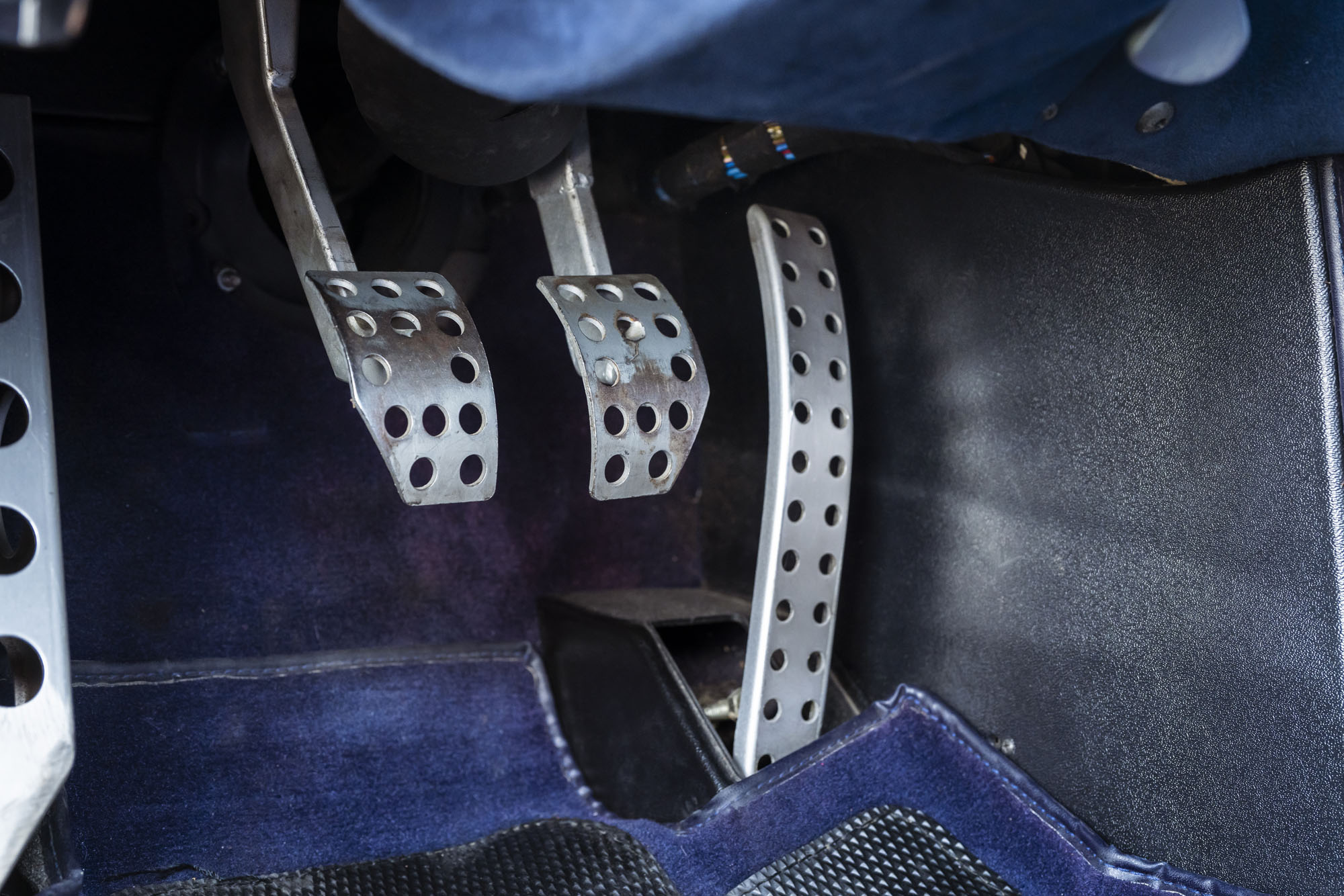 Tipping the scales at about 3,150 pounds, the Diablo SE30 benefited from a savings of more than 300 pounds over the standard rear-wheel drive Diablo and nearly 400 pounds over the all-wheel drive VT. Lamborghini also eliminated creature comforts such as air conditioning, power steering, the Alpine audio system, and the multi-adjustable leather seats. Purposeful carbon fiber seats fitted with four-point racing harnesses held the driver and passenger in place. Even the power windows were removed in favor of fixed plexiglass units with a sliding vent window.
