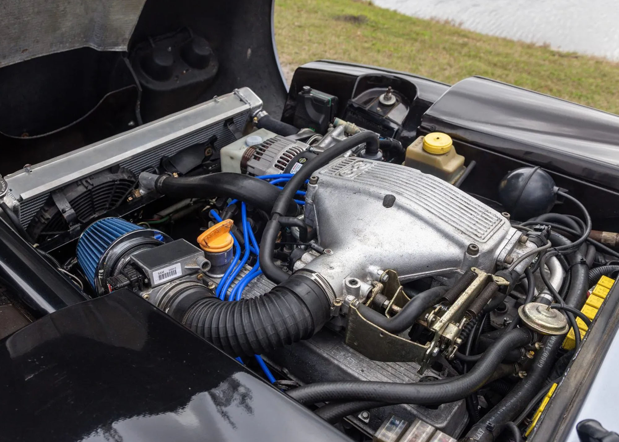 Under the hood, the Rover-derived V8 benefits from updated internals, ECU tuning, and improved cooling via an aluminum radiator and electric fans. Power is sent to the rear wheels through a five-speed manual gearbox, while upgraded exhaust components enhance both performance and sound.