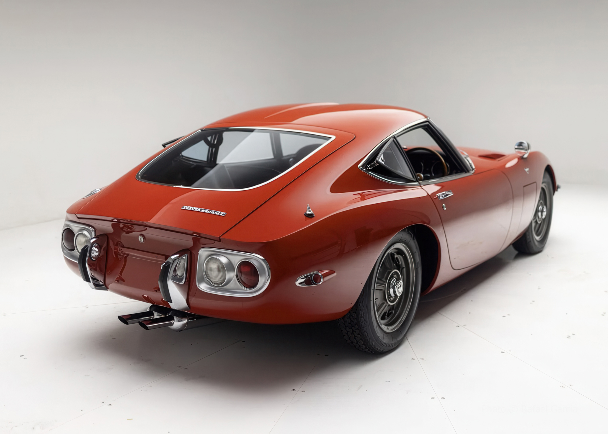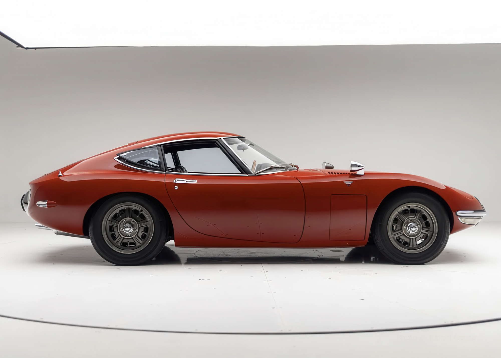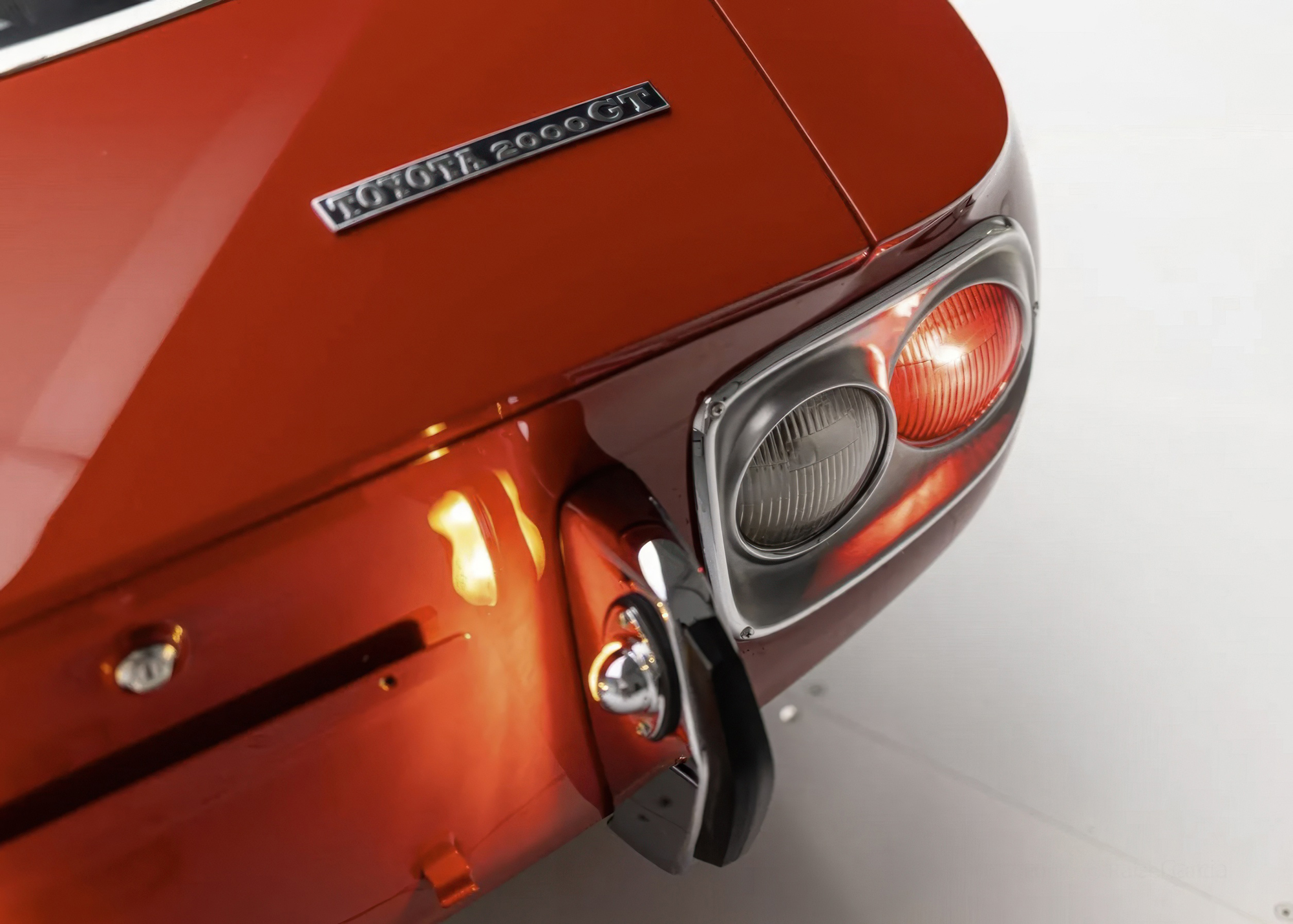 Developed collaboratively by Toyota and Yamaha, the 2000GT debuted as a prototype at the 1965 Tokyo Motor Show and entered production in February 1967. Construction was carried out by hand at Yamaha’s Itawa factory and incorporated bodywork styled by Toyota’s Satoru Nozaki. With its contoured roof standing under 46” at its highest point, the 2000GT also featured pop-up headlights, driving lamps faired into the nose, bullet-style fender mirrors, and louvered panels flanking the hood.