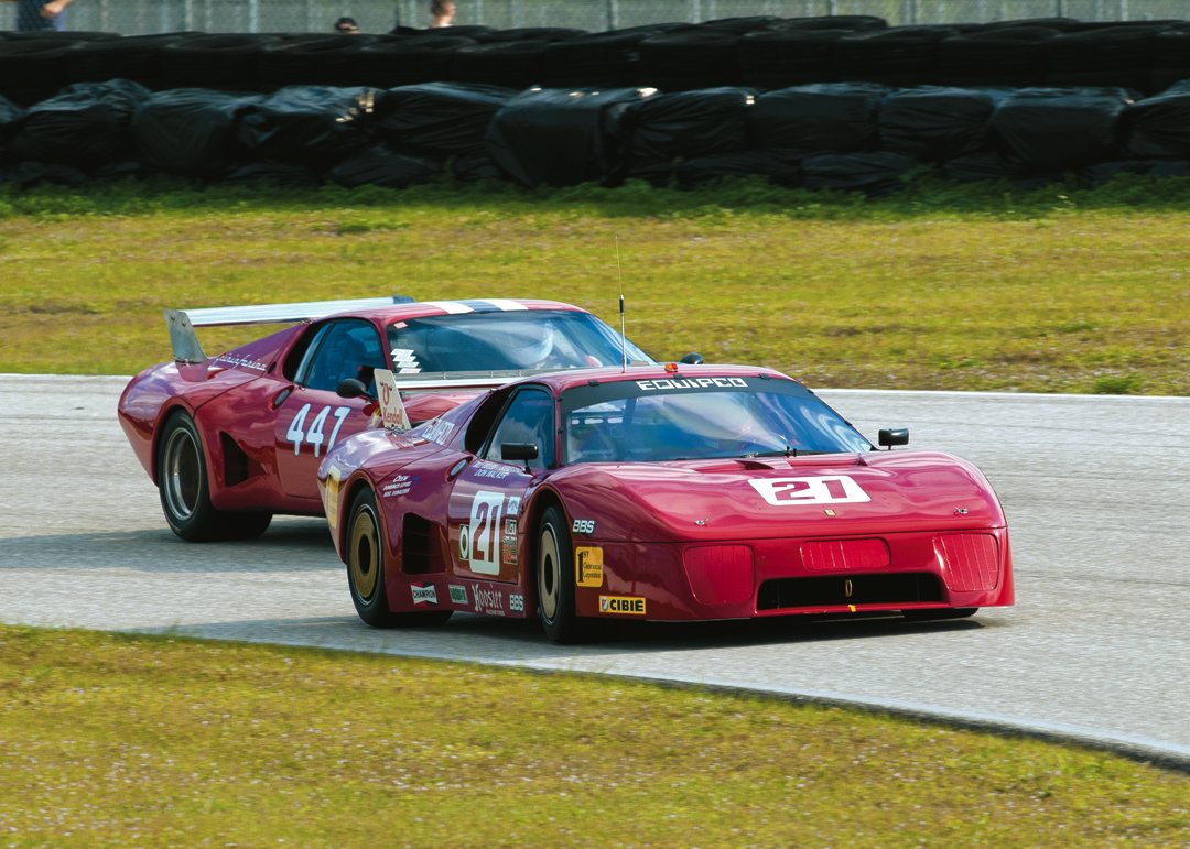 Ferrari 512 BBLM pilots Todd Morici (#21) and Jim Fuchs (#447) duel for the DSF5 class win that ultimately went to Fuchs. Photo: Chuck Andersen
