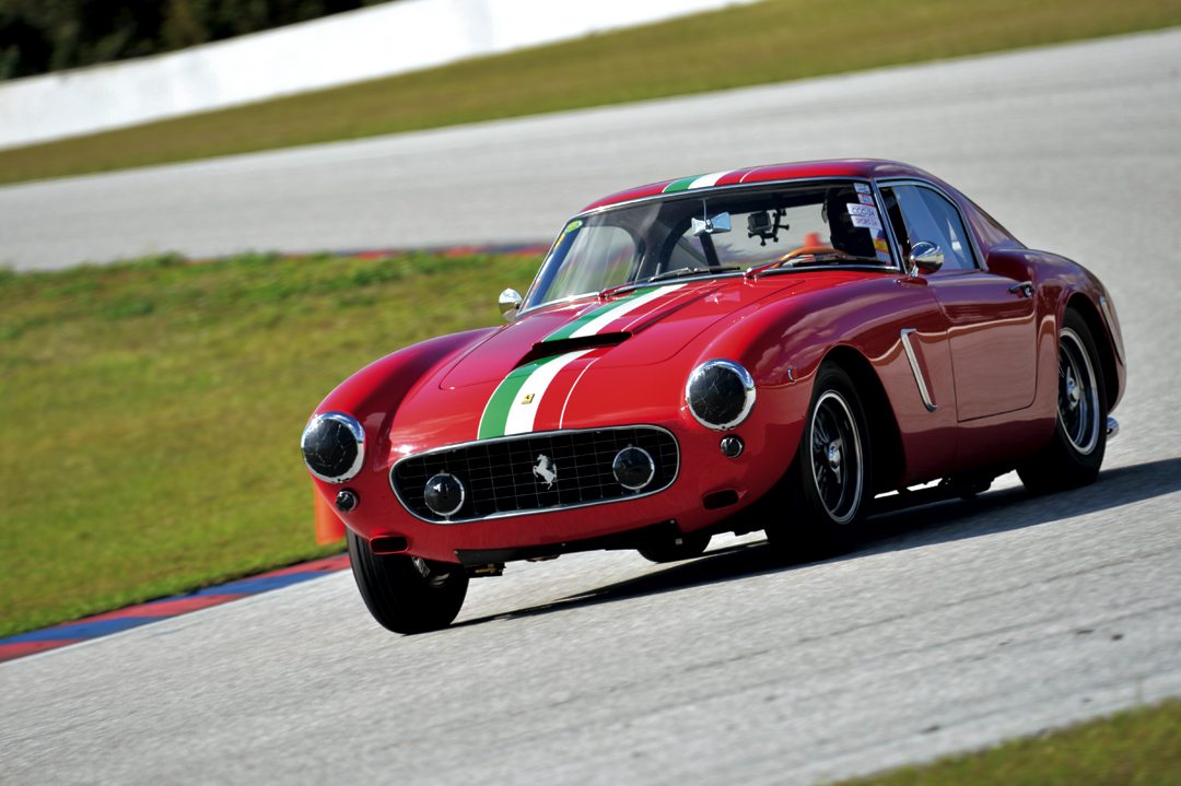 Eventual class winner Ed DaviesÕ Ferrari 250 GTO (#19) chases Leslie DaviesÕ Ferrari 250 GT SWB (#12). Photo: Chuck Andersen