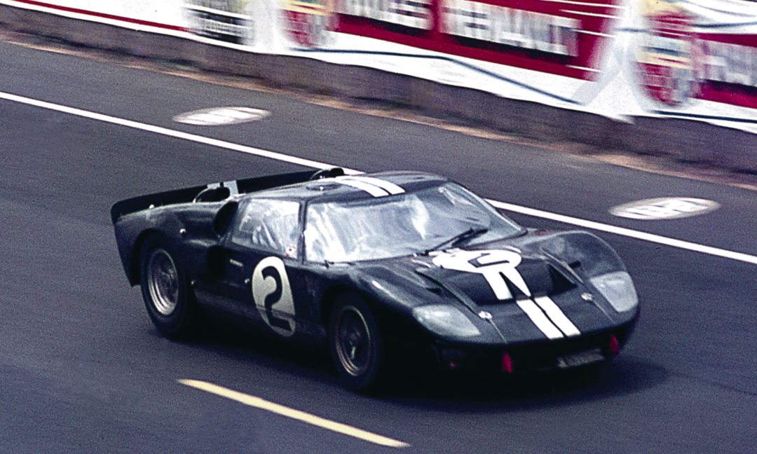Winning GT40MKII of Bruce McLaren/Chris Amon speeds along the pit straight to complete one of it’s 360 laps. Photo: Roger Dixon