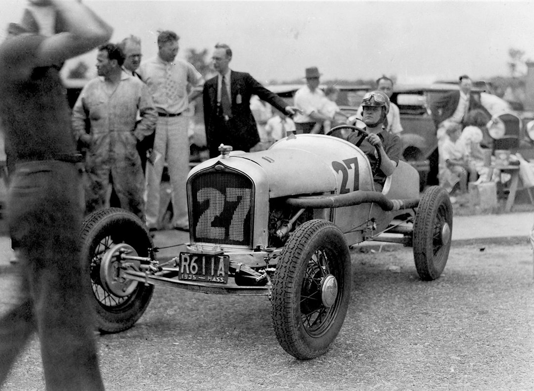 The Old Grey Mare rolls out ready to race at Briarcliff Manor, New York, in 1935, after Lem Ladd figured out how to rectify a front-end shimmy problem.
