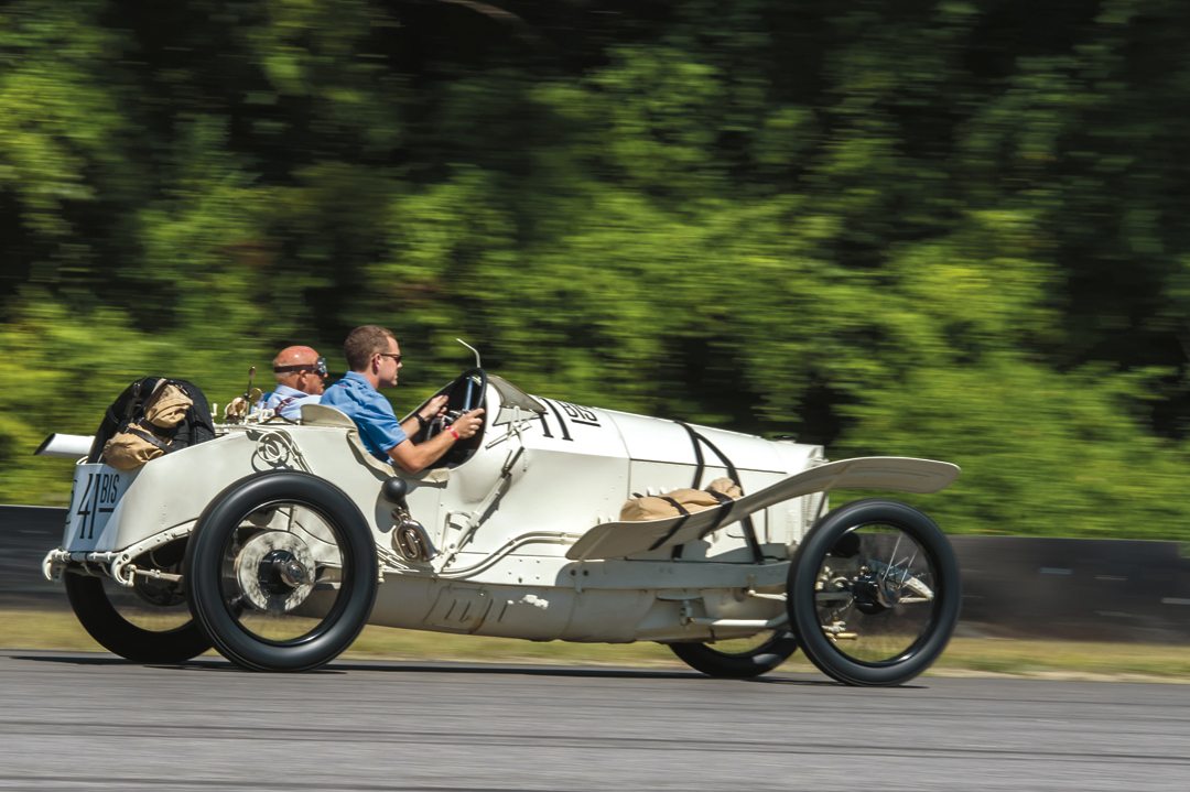 1914 Mercedes GP car with Sir Stirling Moss as the passenger. Photo: John Avery