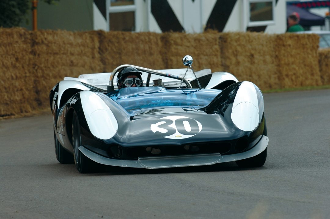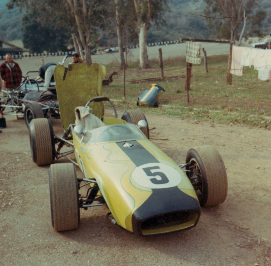 Period shot shows Stokes and his Lotus at speed, racing at Riverside.