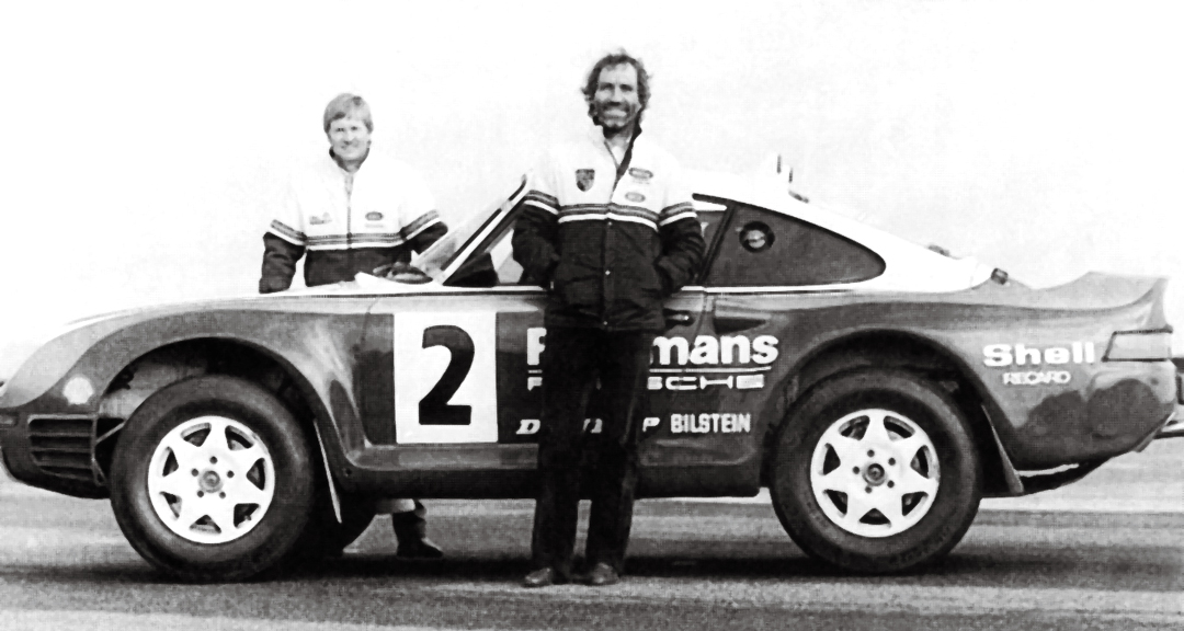Team of Porsche 959s finish 1st, 2nd and 6th in the Paris-Dakar Rally (1986).