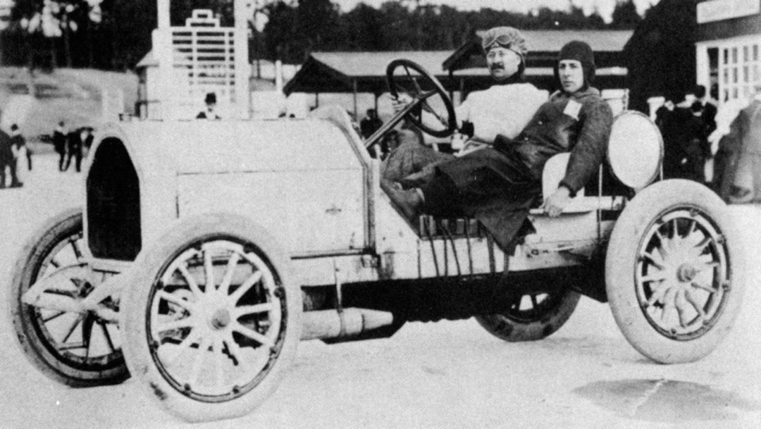 Racing begins on the Brooklands circuit in England (1907).