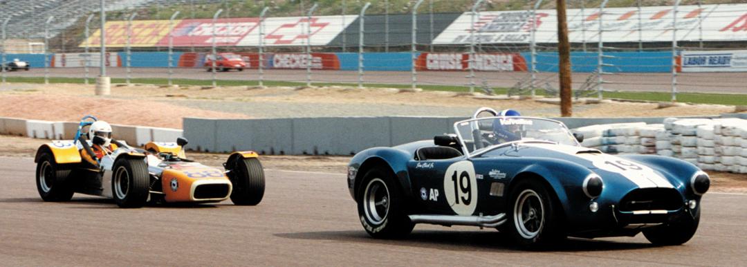 The Shelby GT350 of Jim Click leads the Camaro of Bob Scheer.