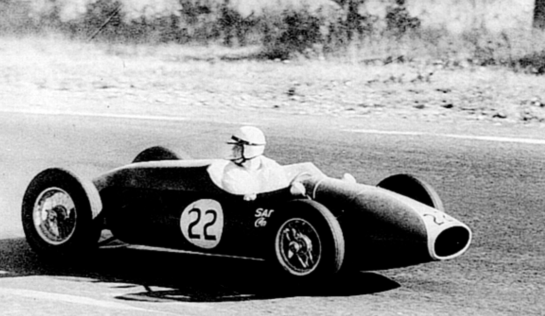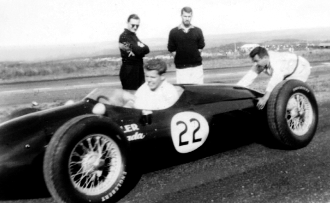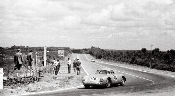 Peter Ryan checks on the competition during a race at Watkins Glen in 1960.