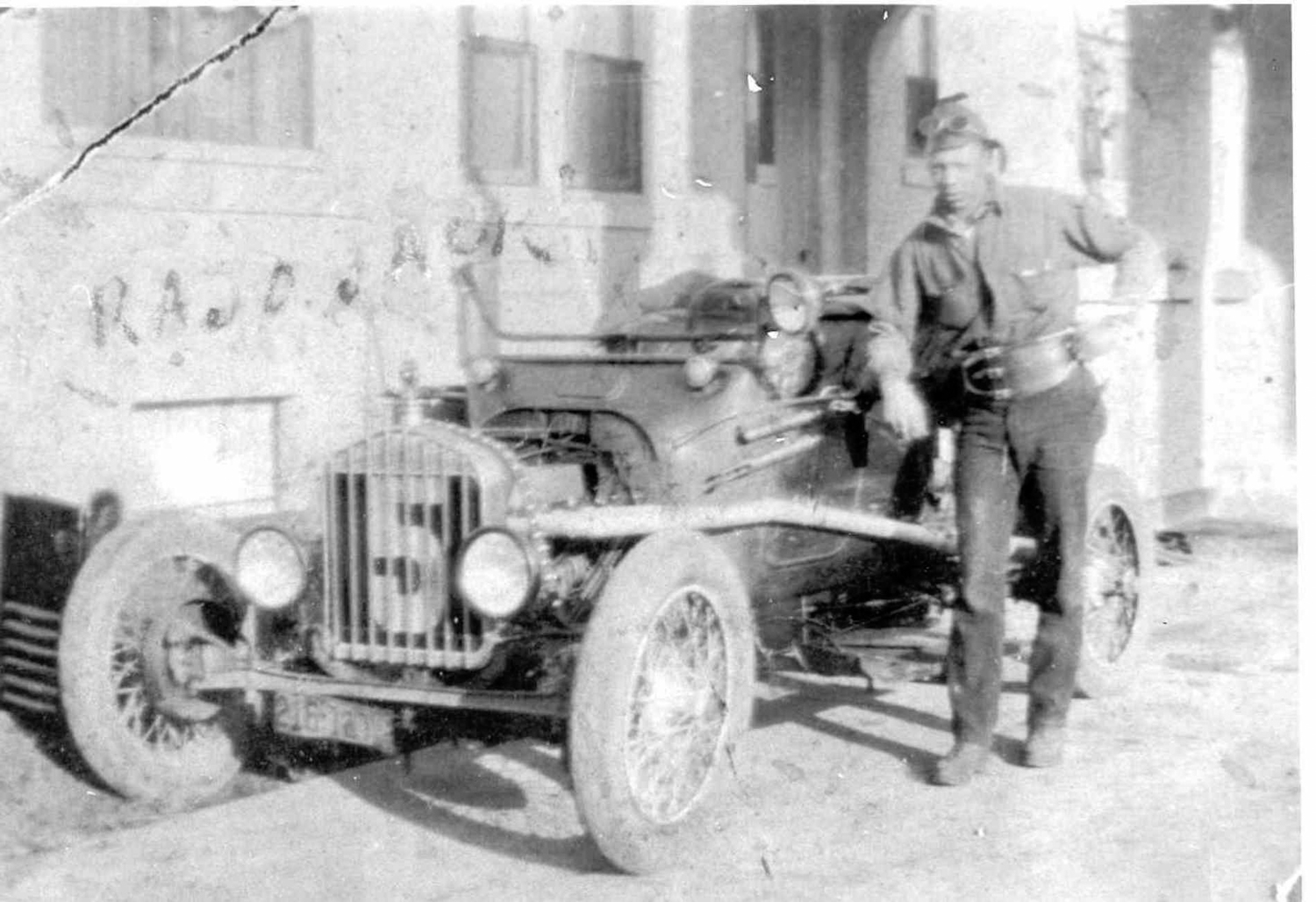 Rajo Jack receives a trophy from Gus Schrader (wearing hat) after a race at Southern Ascot Speedway, Podurgiel Collection