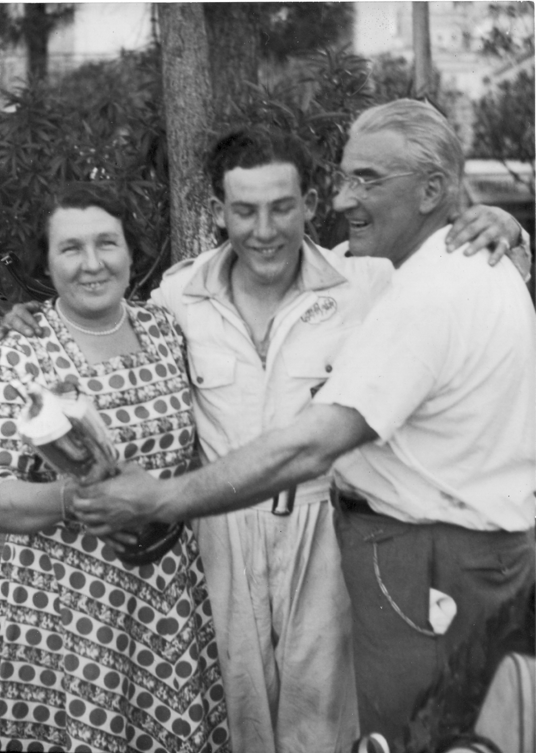 Stirling Moss after winning a 500cc race with his parents credit J Dognibene, Nice