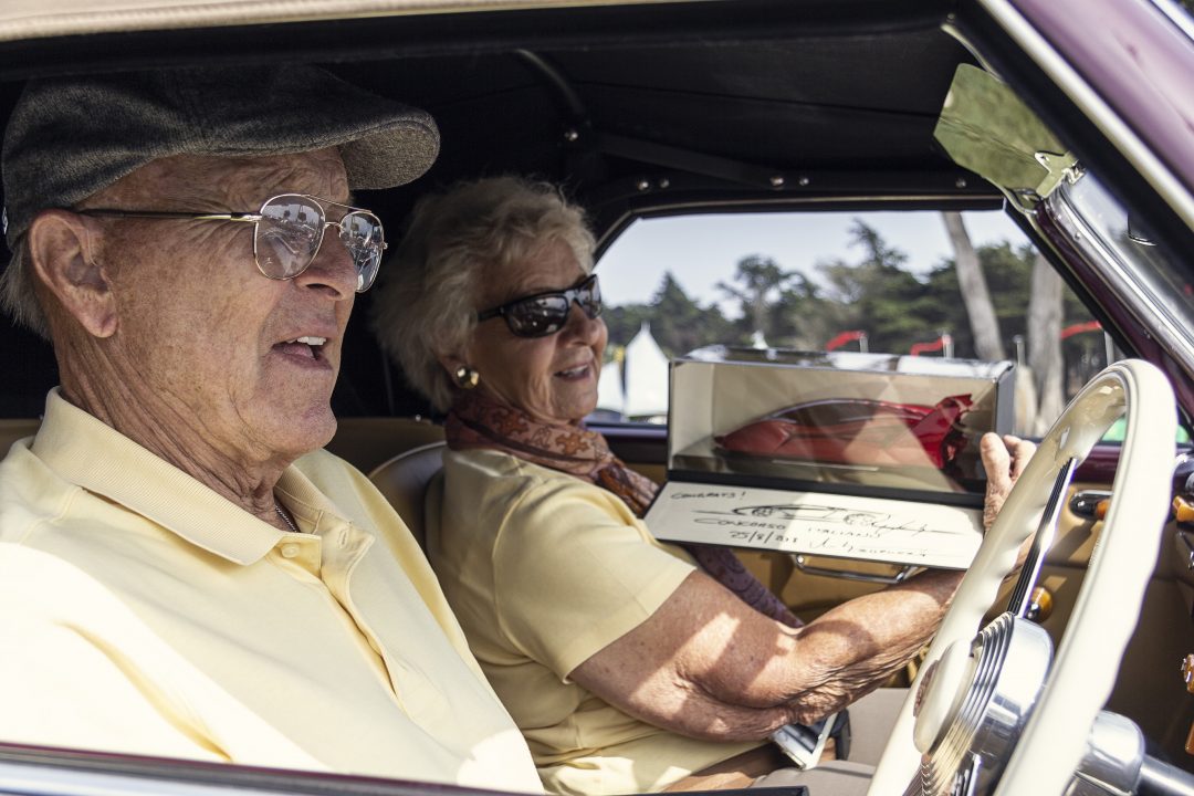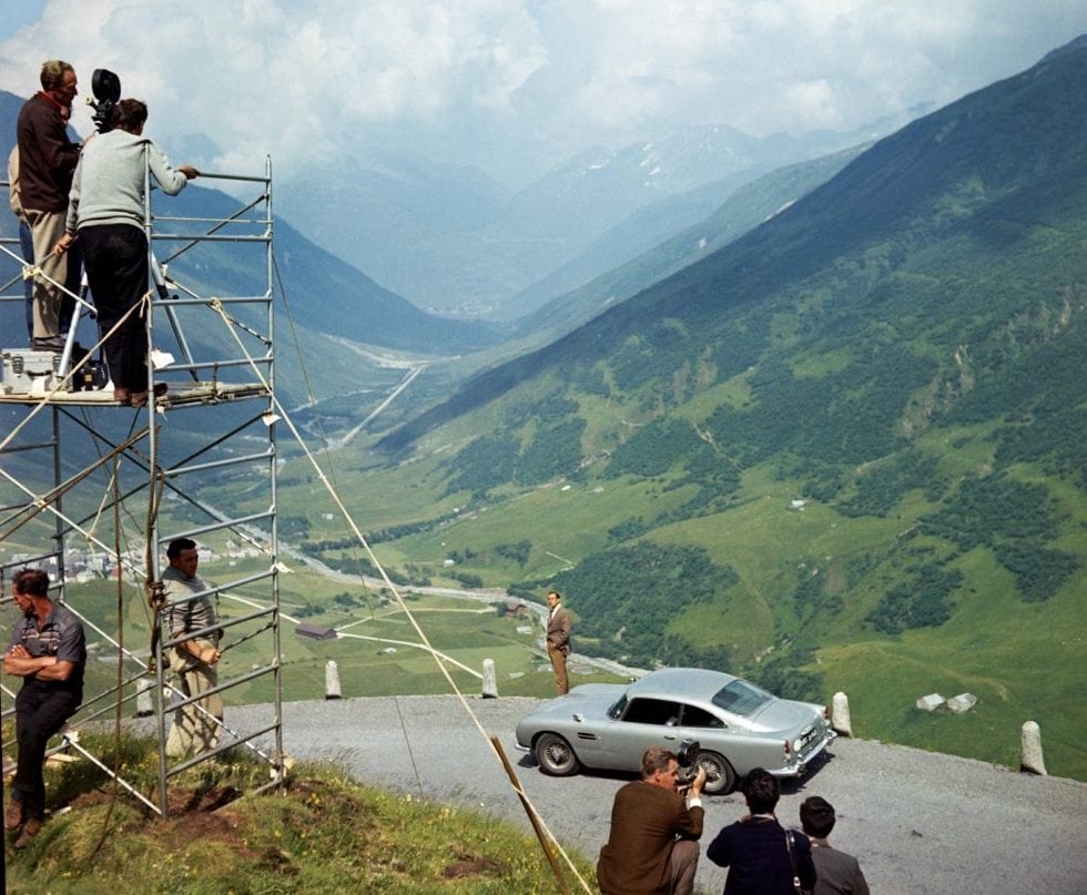 The force of the jet pack can be seen whipping up the dust and stones on the road as it comes into land.Waiting at the Aston Martin DB5 is French spy Madame LaPorte. played by MARYSE GUY MITSOUKO.