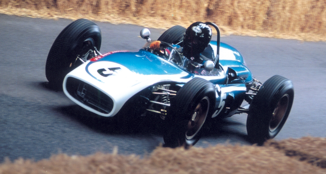 Damon Hill at the wheel of the rear-engine Scarab. Photo: Peter Collins