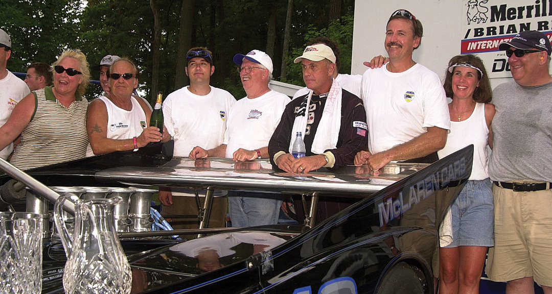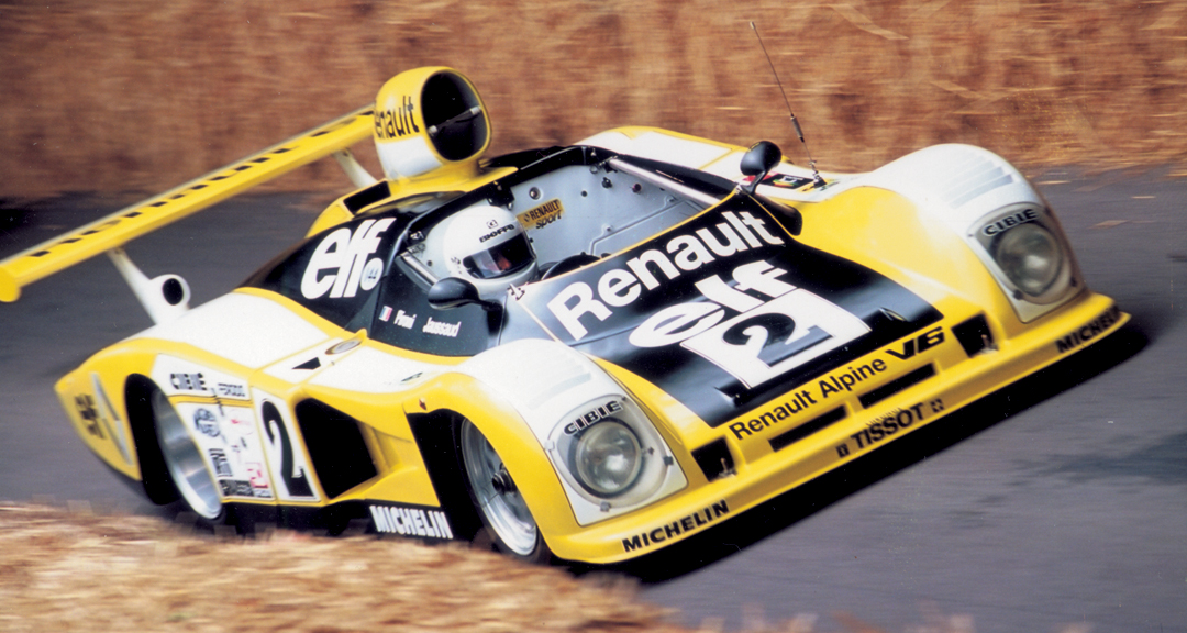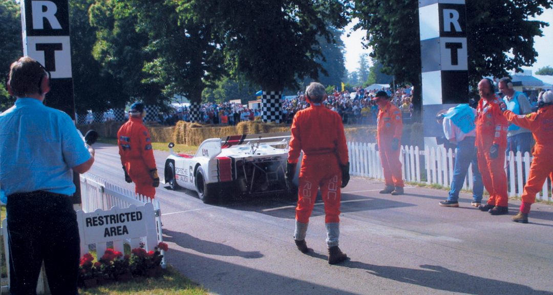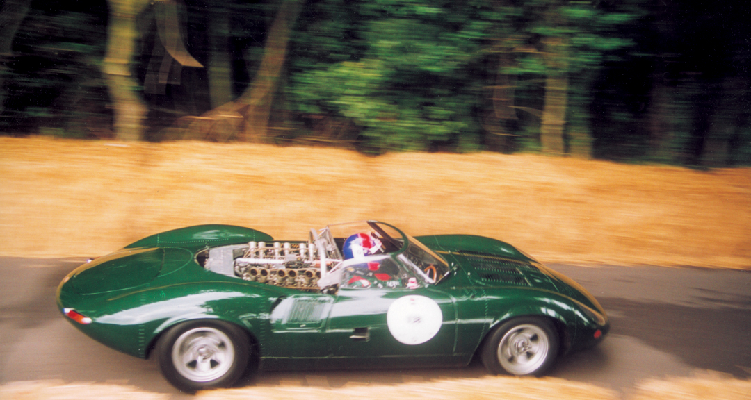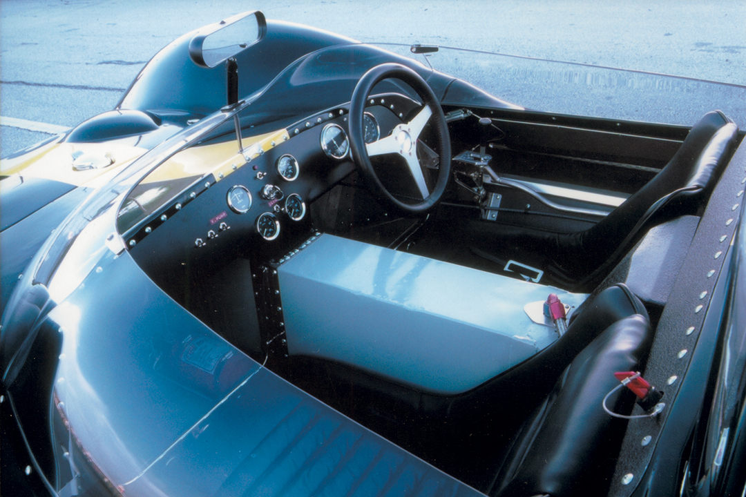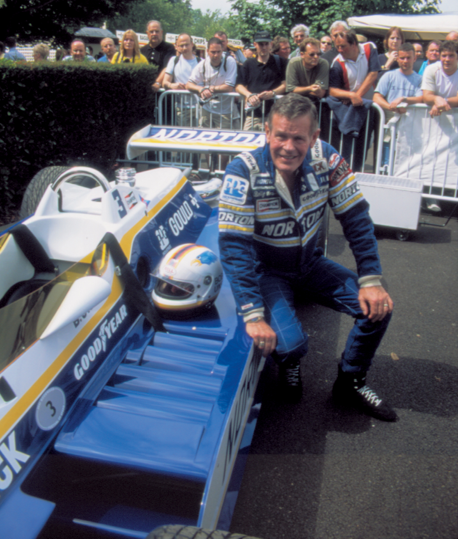 Damon Hill at the wheel of the rear-engine Scarab. Photo: Peter Collins