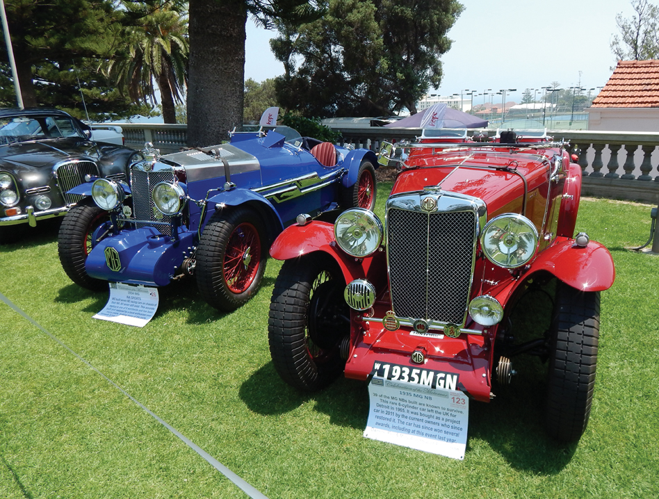 The blue 1934 MG NA (replica) next to 1935 MG NB.