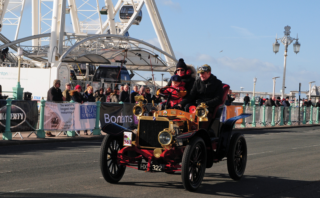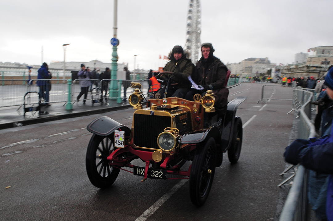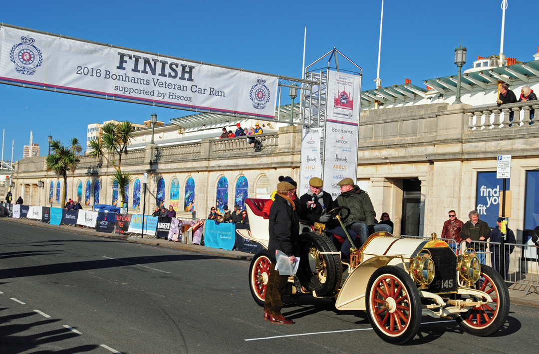 First car to arrive in Brighton. The racing Mercedes of Tim Scott