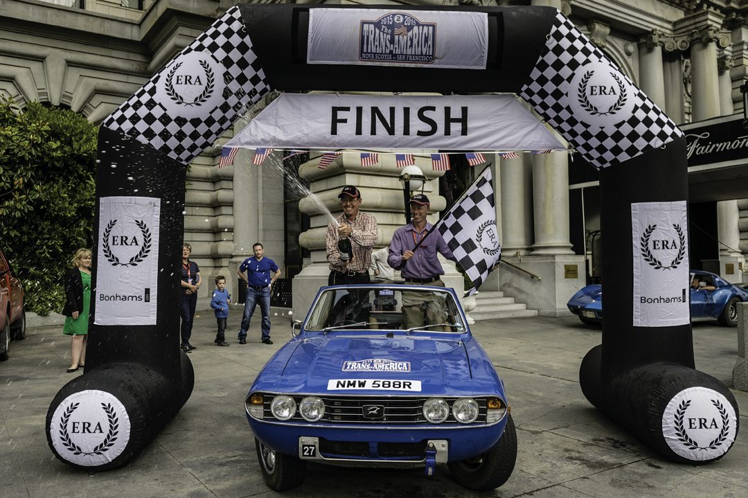 Phil Garret and Kieron Brown achieve their goal, to finish the 6000mile TransAmerica Rally in the Stag credit Gerard Brown