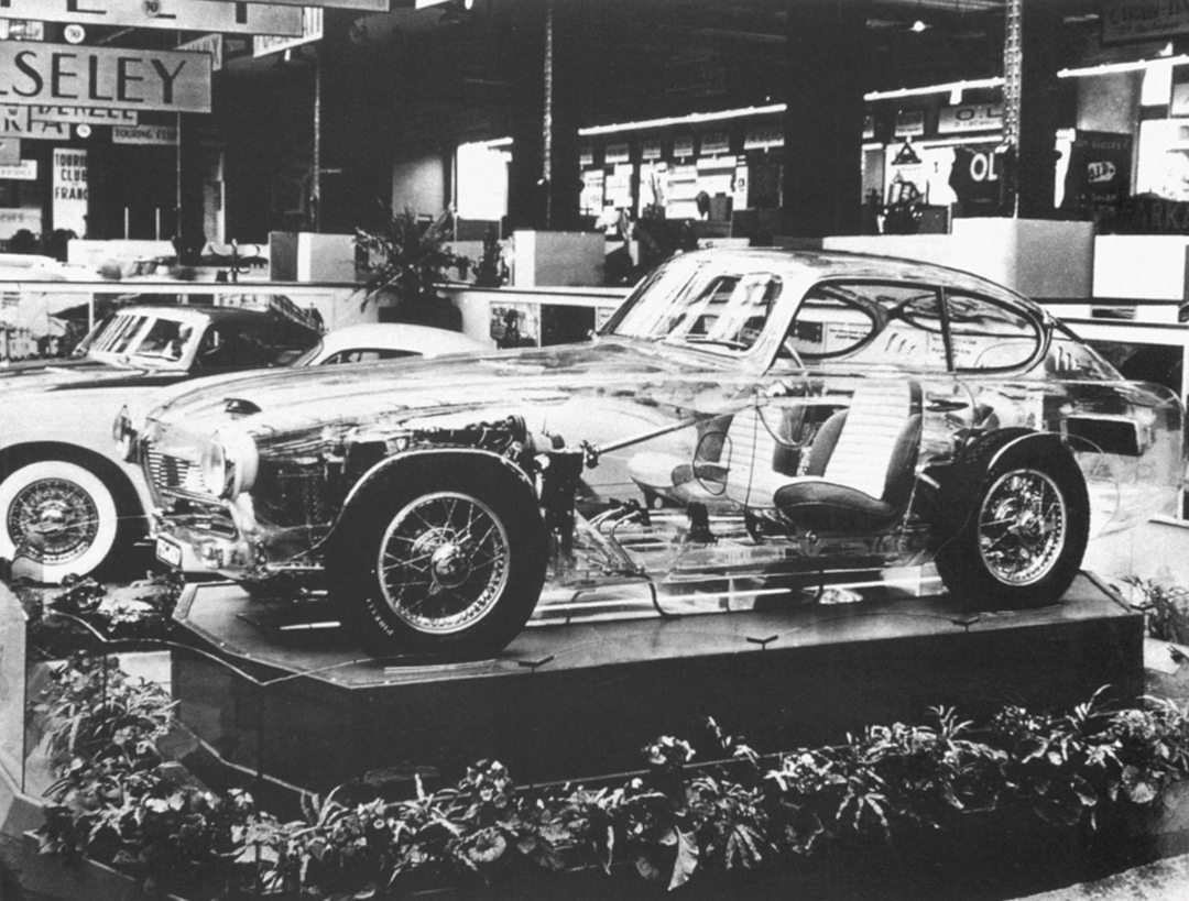 Transparent-bodied Z-102B on the Pegaso stand at the 1953 Turin Auto Show.