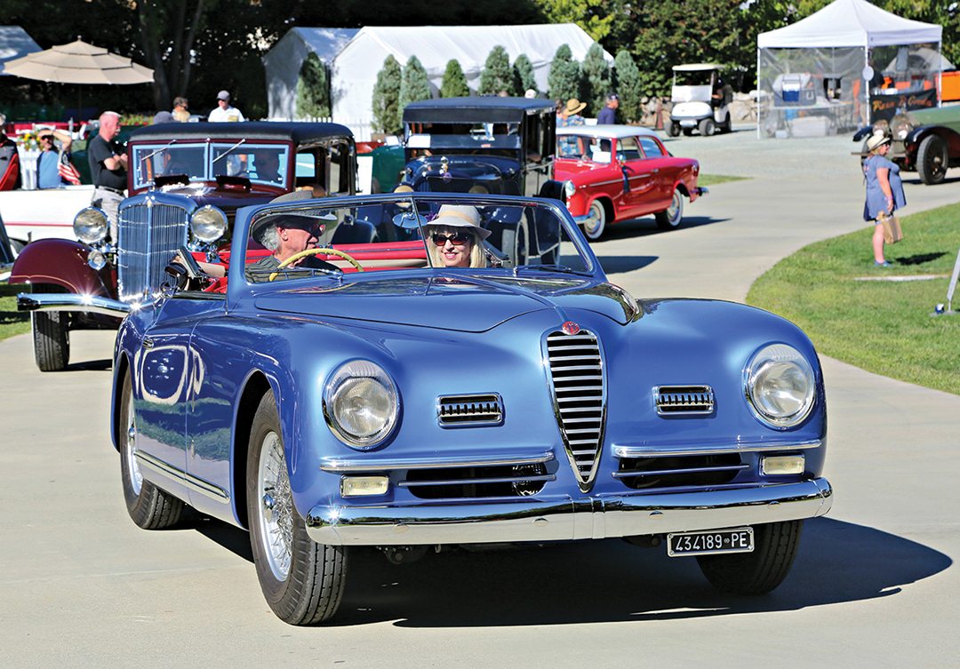 Alex Pilkington behind the wheel of his Alfa Romeo 6C 1750. Photo: Pete Austin