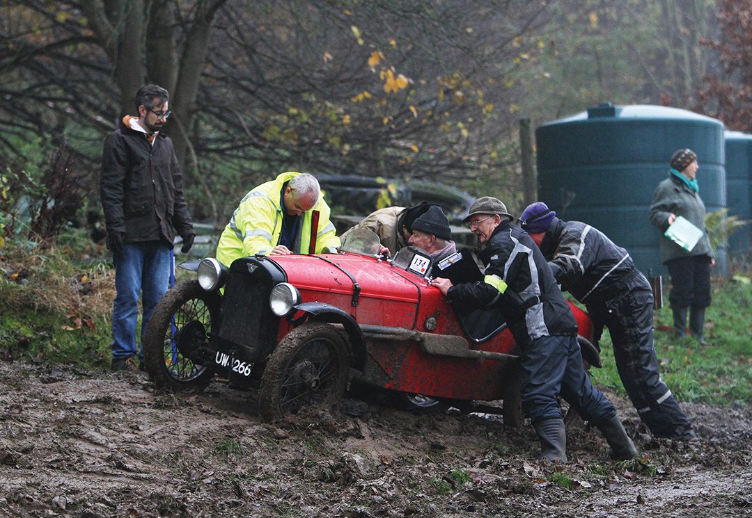 Seymour Price gets help with his Austin 7 Ulster. Photo: Pete Austin