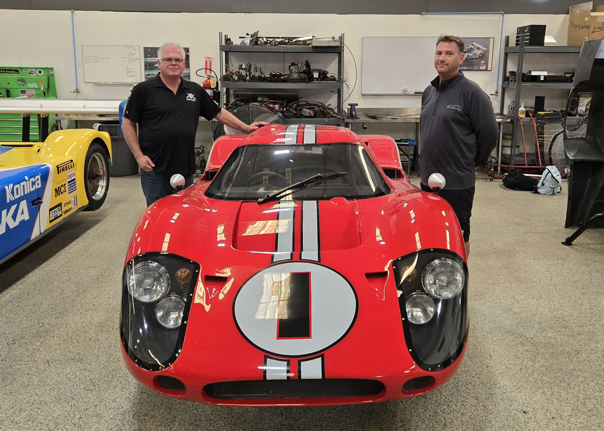 Bill Riley and Car build manager Mark Sims with J-20 at Riley Technologies. Photo : Martin Raffauf