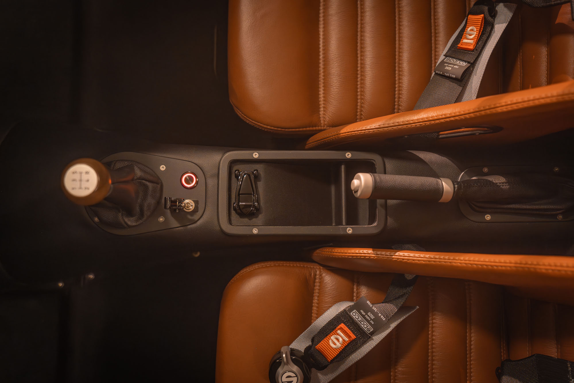All of the racing experience of the SP40 team was poured into the construction and fine-tuning of the Restomod. Development began at the racetrack, where the bare chassis was tested extensively without bodywork, enabling refinement of mechanical systems while the exterior design was still in progress. The prototype was equipped with custom-designed coilover shock absorbers, adjustable for ride height as well as compression and rebound stiffness. Countless testing sessions followed, experimenting with spring rates, shock settings, torsion bars, camber, and toe until the optimal balance was achieved. Test drives and setup work were carried out by drivers from the Sport Prototype category alongside the racing team, whose feedback was crucial in shaping the car’s final behavior. The result is a chassis that feels alive yet composed, transmitting confidence at the limit and carrying that balance directly into the production SP40 Restomod Speedster.